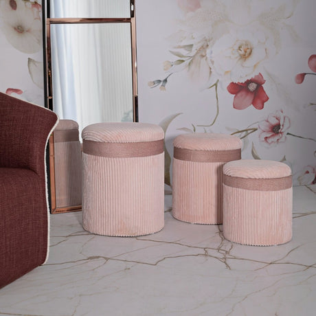 PUFF C/CONTENITORE CORTINA ROSA SET 3 PZ - FERRETTI