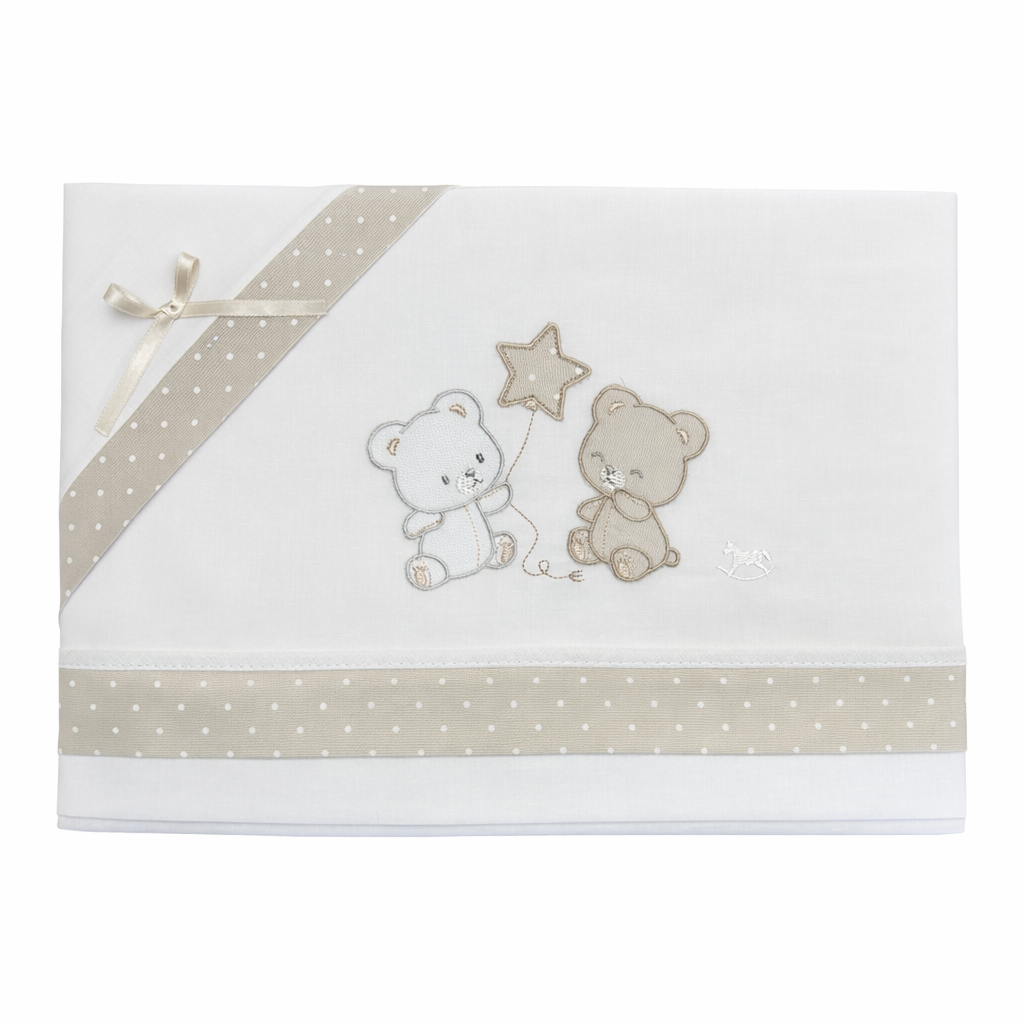 Il set include: lenzuolo sopra 80x115 cm, federa 40x30 cm e lenzuolo sotto con angoli elasticizzati 35x75 cm +10 cm, studiato per aderire perfettamente al materassino. Una soluzione pratica e curata nei dettagli, ideale per il corredino o come dolce idea regalo nascita.