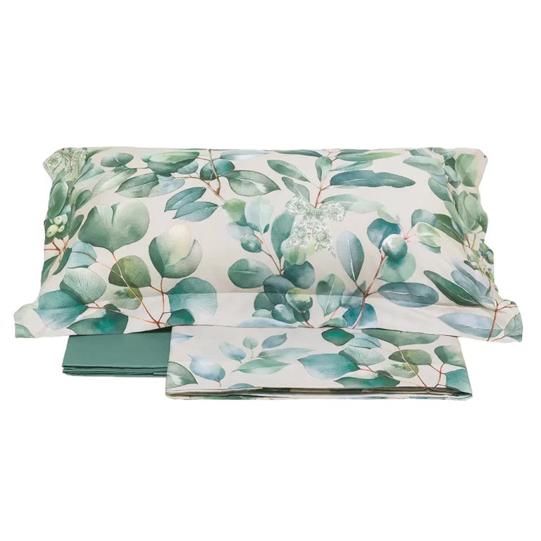 Completo lenzuola con balza a giorno realizzato in percalle di cotone 200 T.C. Il lenzuolo e le federe a 3 volant sono stampati in digitale con motivi floreali, il sotto con angoli è in tinta unita. Vesti la tua camera da letto con lo stile e la qualità inconfondibile di Tessitura Randi.
