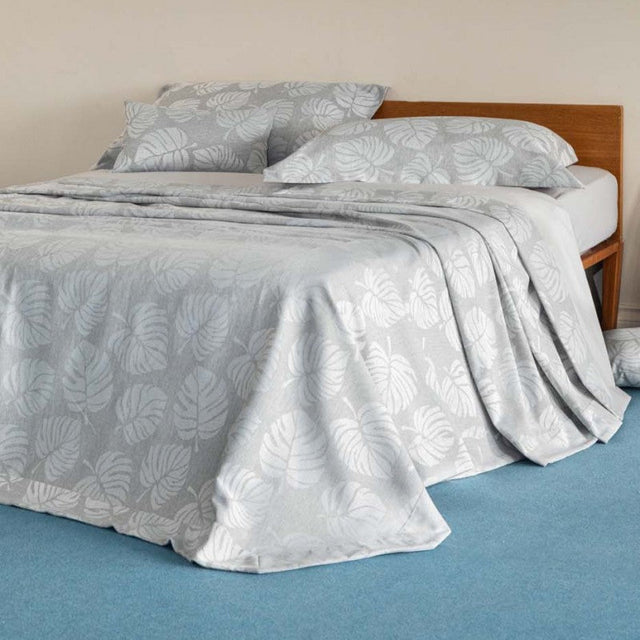 Completo letto in puro cotone 100% con bordo lenzuolo e soprafedere in tessuto jacquard Eco Green, realizzato artigianalmente e 100% Made in Italy.