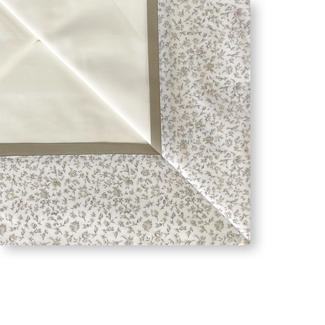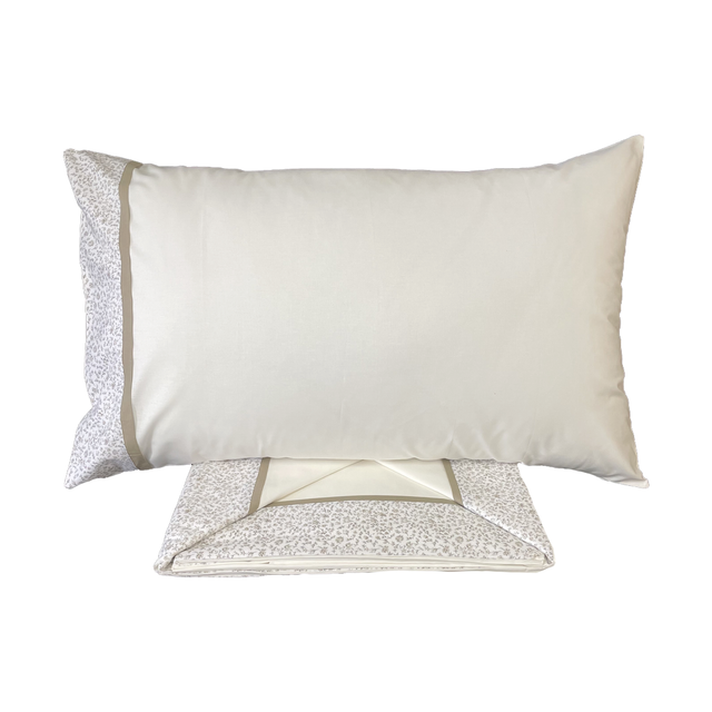 Completo lenzuola matrimoniale in puro cotone con bordo a fantasia .