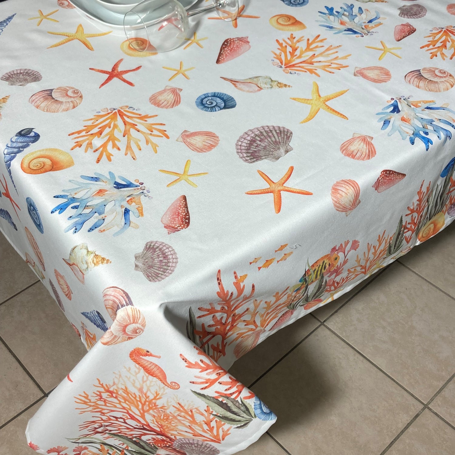 Tovaglia con stampa all over in tecnica digitale a tema marino