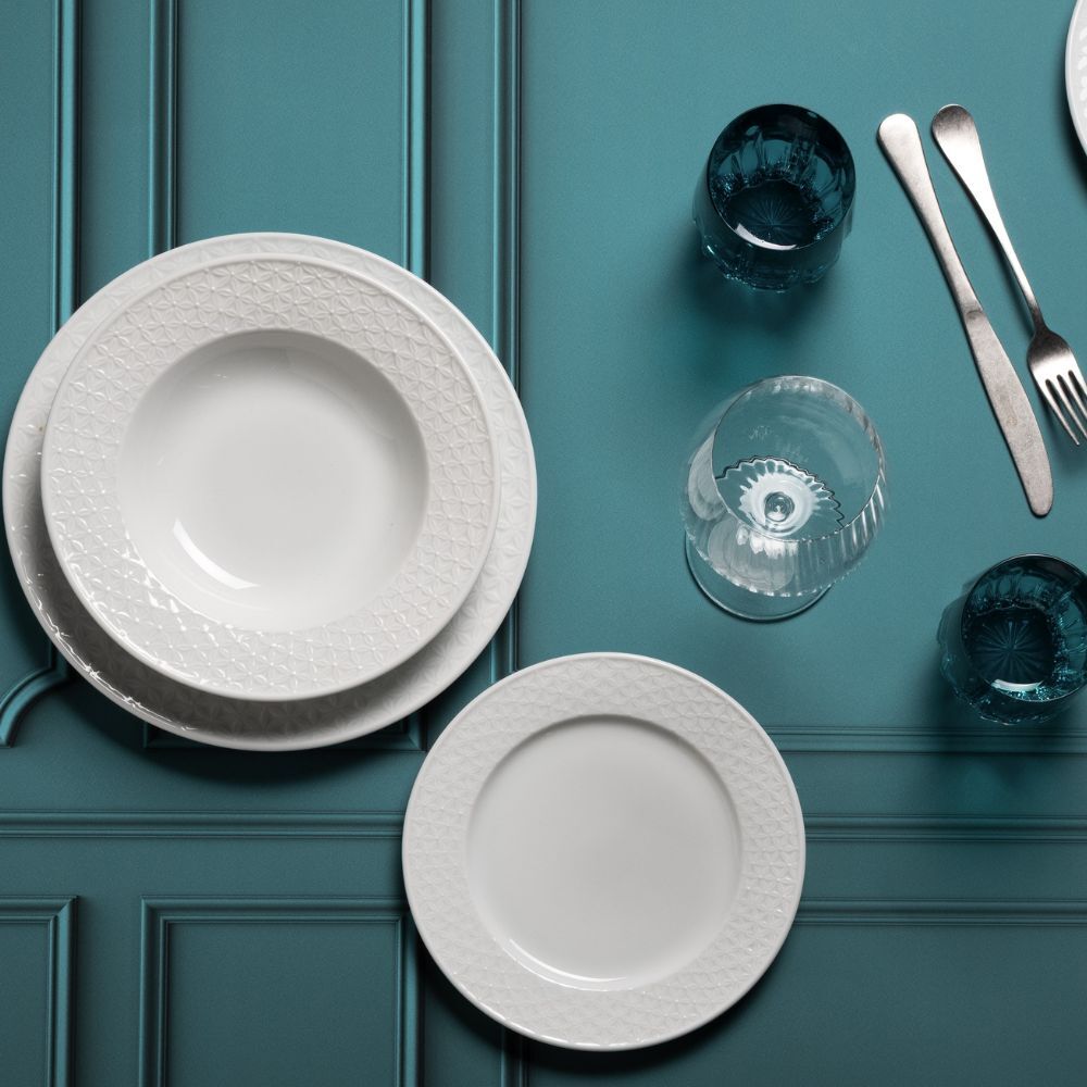 Il servizio tavola Star di Weissestal da 18 pezzi in porcellana unisce eleganza e praticità, ideale per apparecchiare con stile ogni occasione. La confezione comprende 6 piatti piani da 27.5 cm, 6 piatti fondi da 23 cm e 6 piatti frutta da 21 cm.