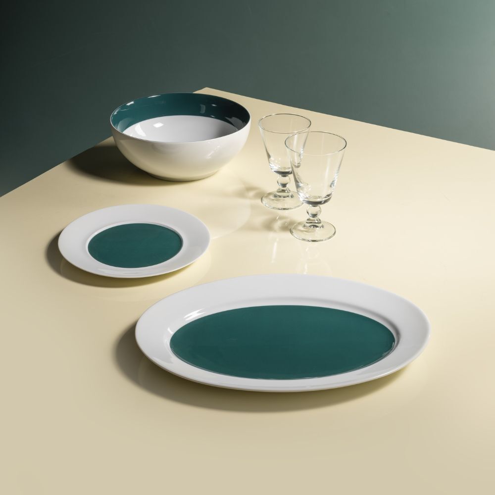 Realizzati in porcellana di alta qualità, i piatti della linea uniscono design esclusivo e funzionalità: resistono al microonde, sono lavabili in lavastoviglie e ideali per l’uso quotidiano e le occasioni speciali.