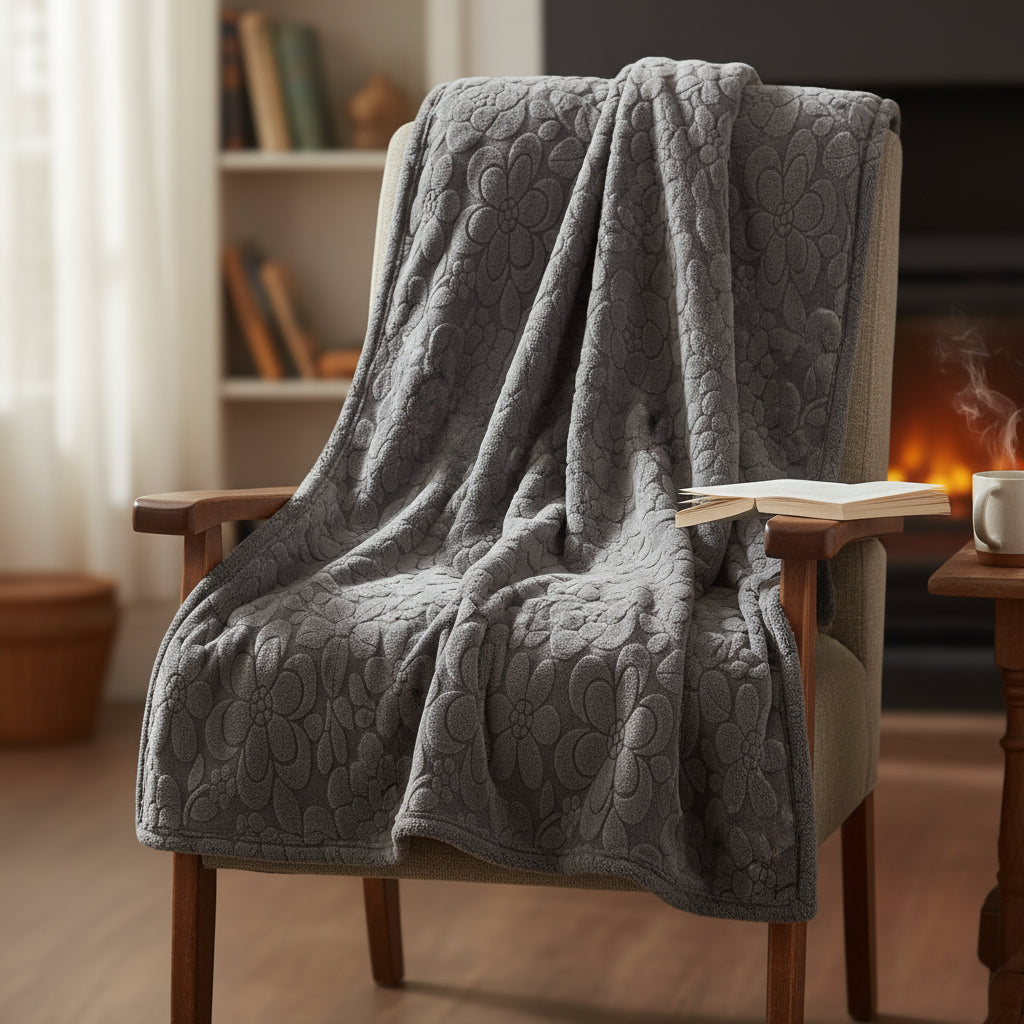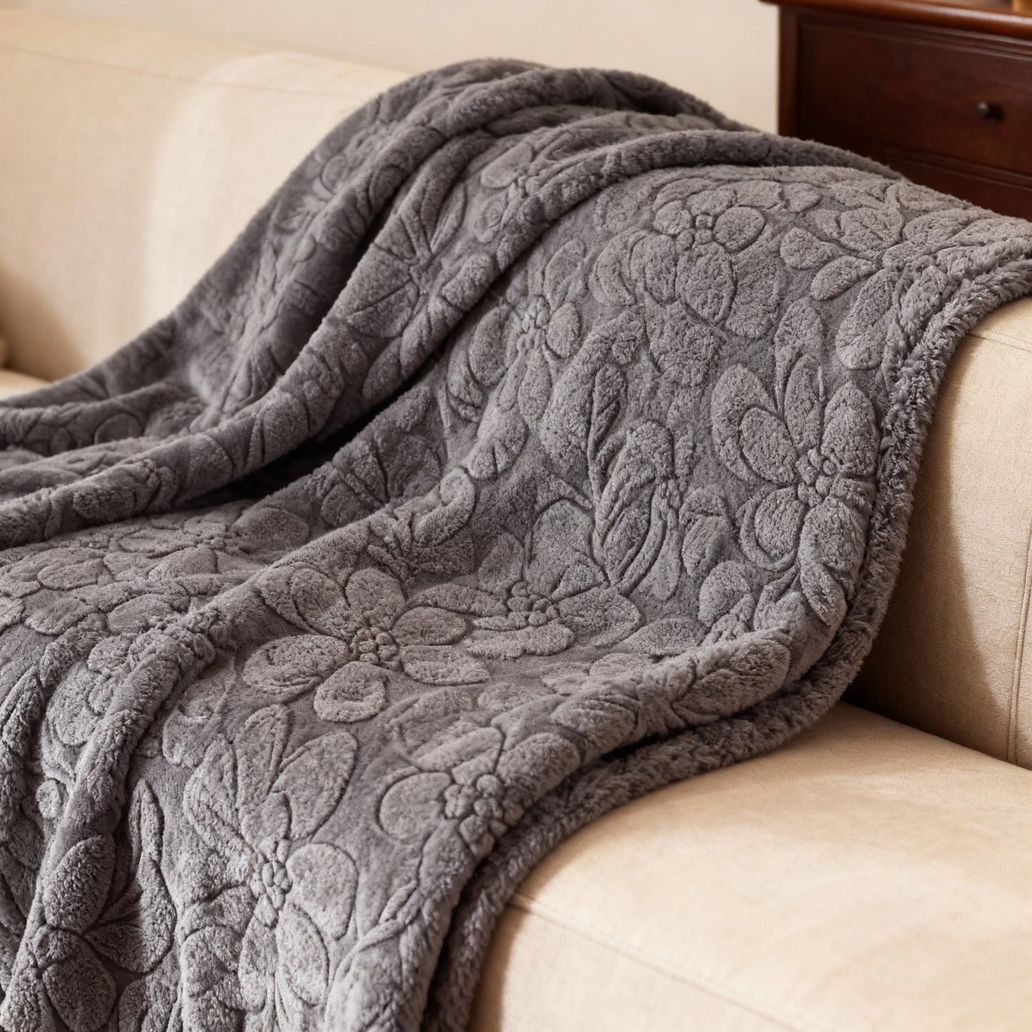 Plaid coperta in morbido tessuto sherpa jacquard con sotto in pelliccia abbinata