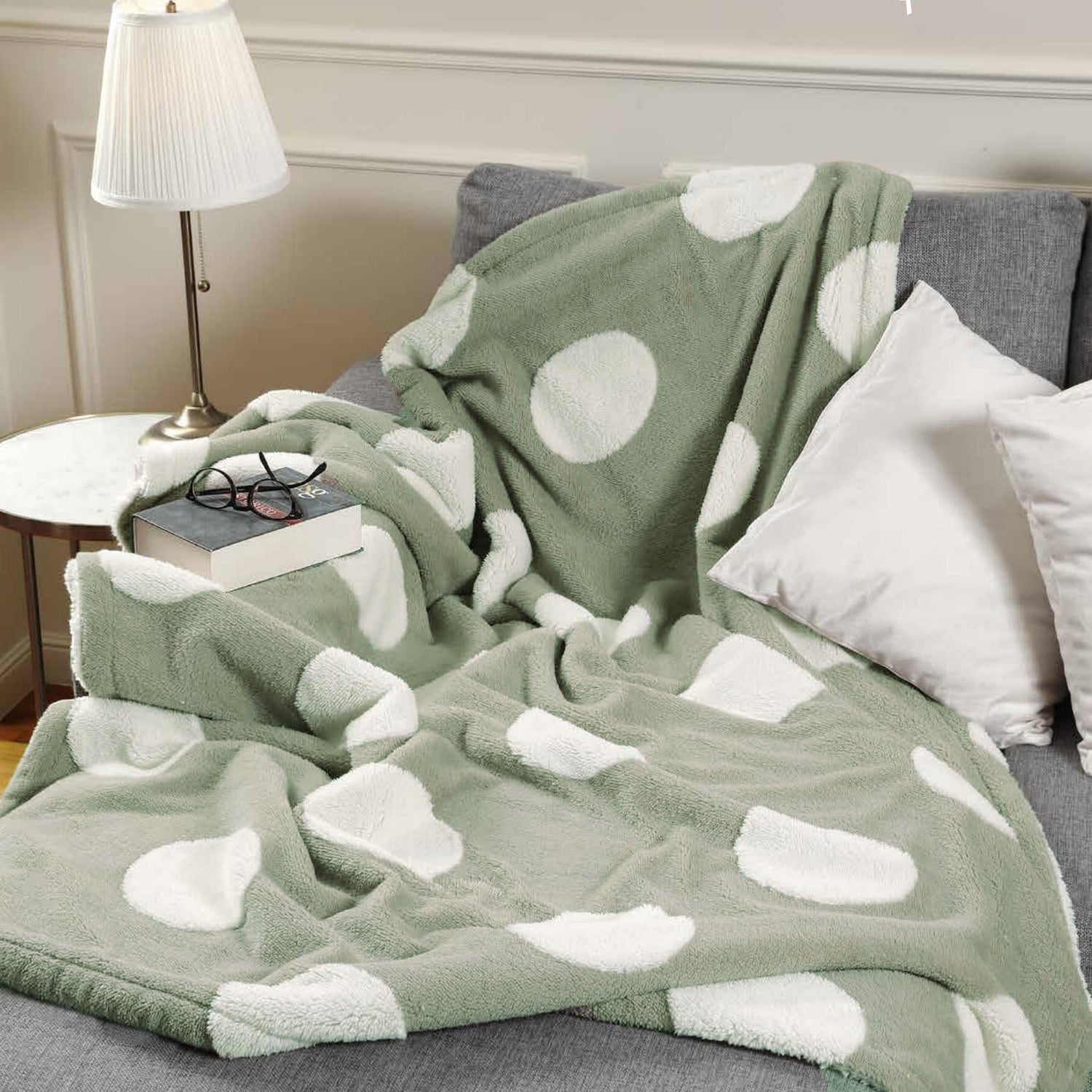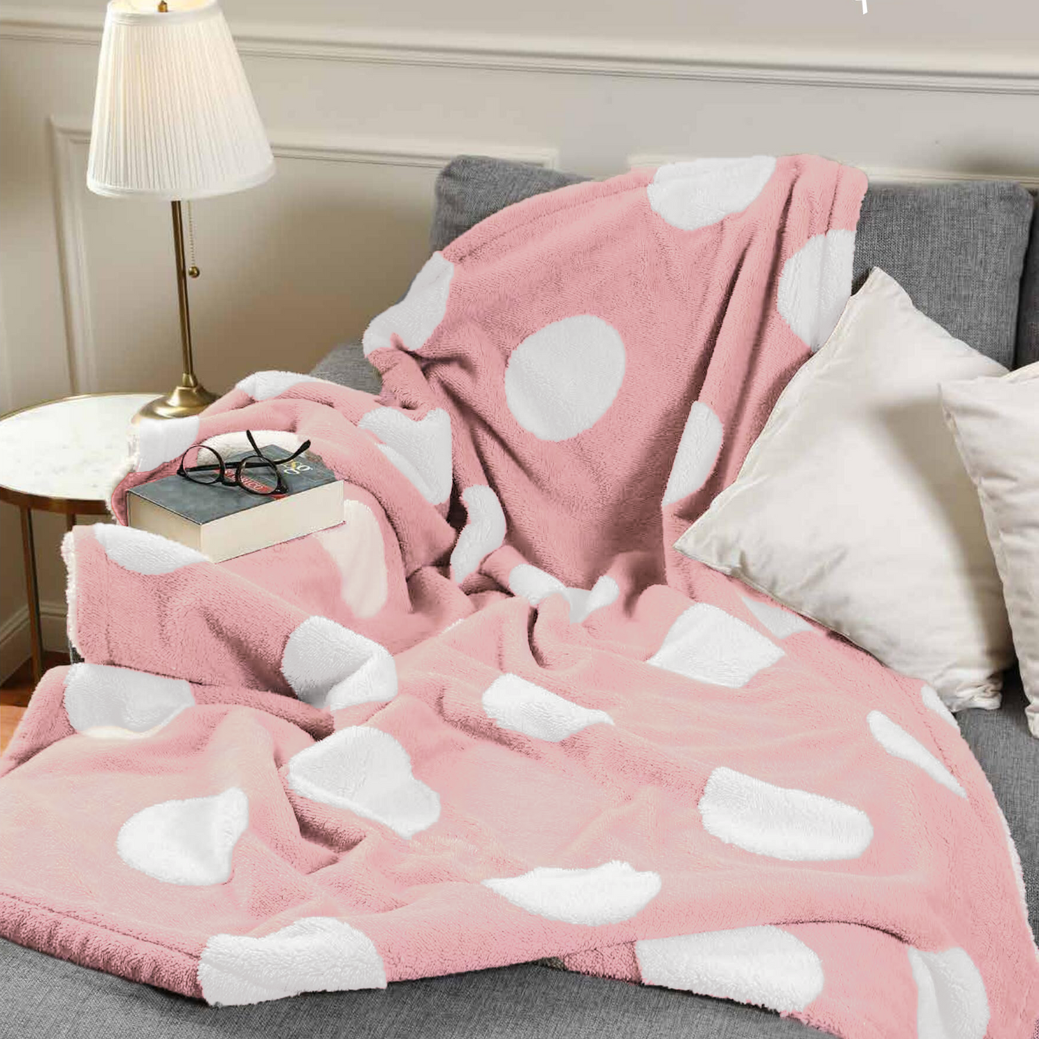 Plaid Dolomiti Pois in Jacquard Sherpa 280 gr/mq e retro in Flannel Tinta Unita 200 gr/mq