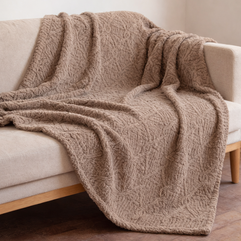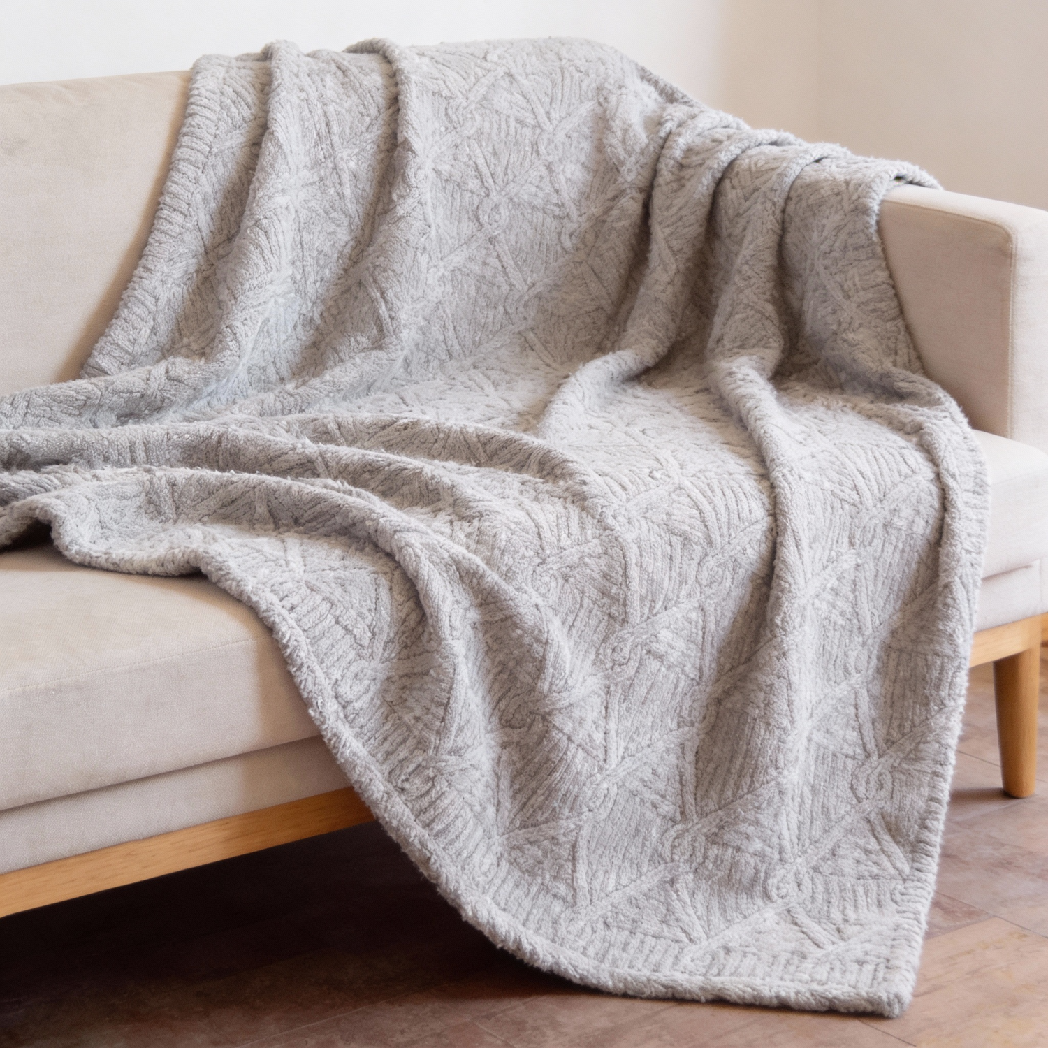 Plaid coperta in morbido tessuto sherpa jacquard con sotto in pelliccia abbinata