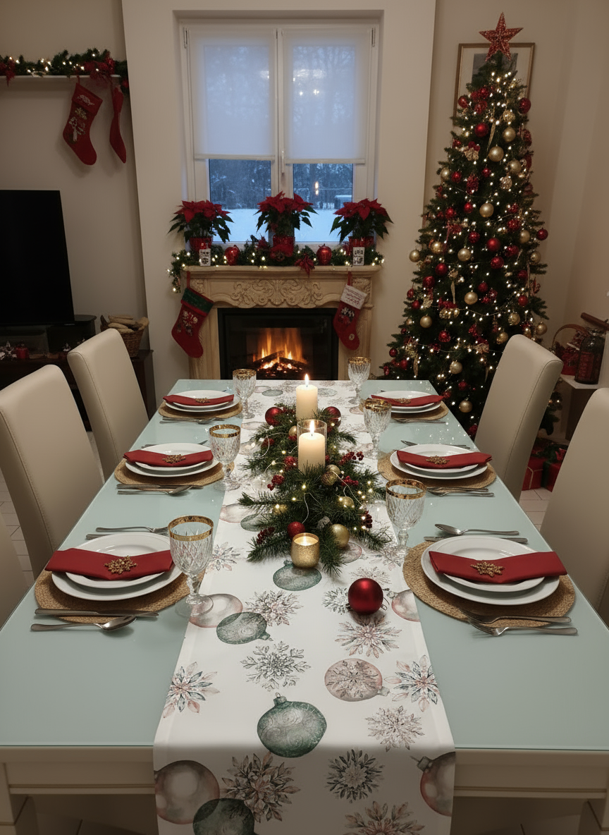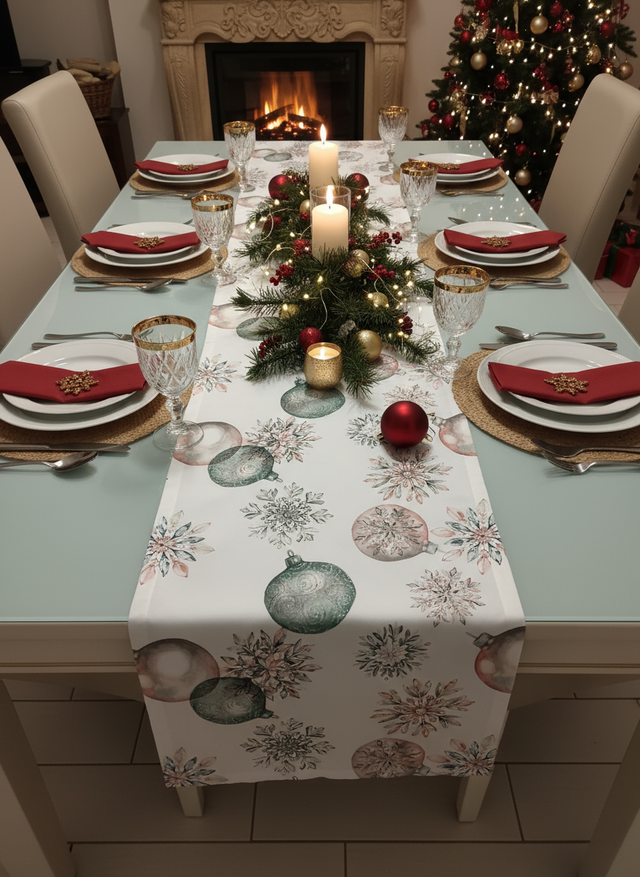 Runner stampato in digitale realizzato con tessuto 100% cotone. Confezione con angolo a cappuccio. Il prodotto viene consegnato in un’elegante scatola. Vesti la tua tavola di Natale con lo stile e la qualità inconfondibile di Tessitura Randi.