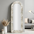 Specchio verticale con elegante cornice ad arco in finitura martellata argento. Le linee morbide e la forma architettonica lo rendono perfetto per ambienti raffinati e moderni. Ideale per l’ingresso, la camera da letto o la zona living.