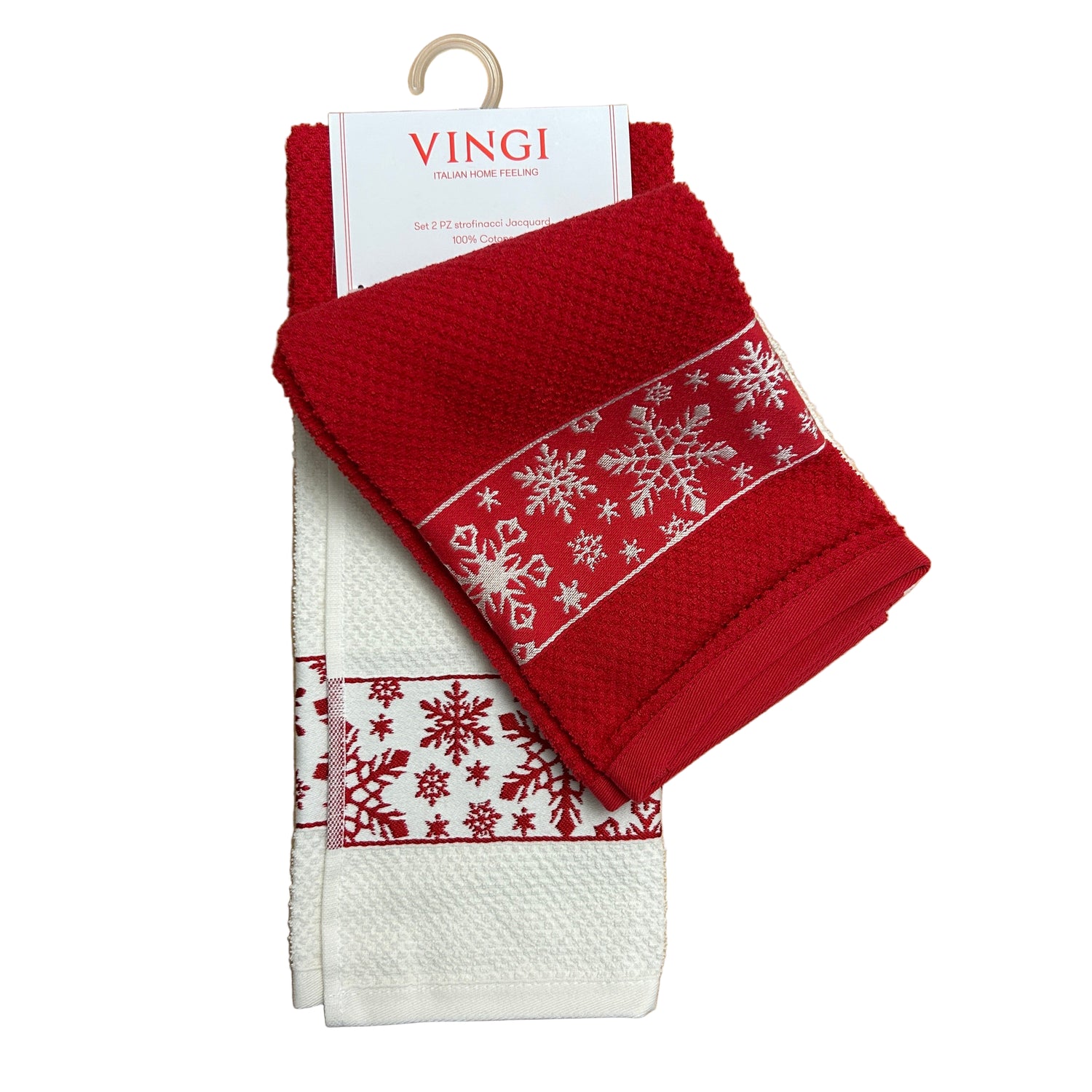 Aggiungi un tocco di eleganza natalizia alla tua cucina con la coppia di strofinacci Vingi, impreziositi da una raffinata balza decorata in tessuto jacquard. Realizzati in 100% cotone, uniscono la praticità dell’asciugatura rapida alla morbidezza e resistenza tipiche della qualità Vingi. Le fantasie a tema natalizio rendono questi strofinacci perfetti per creare un’atmosfera calda e accogliente durante le feste, ideali anche come idea regalo utile e raffinata.