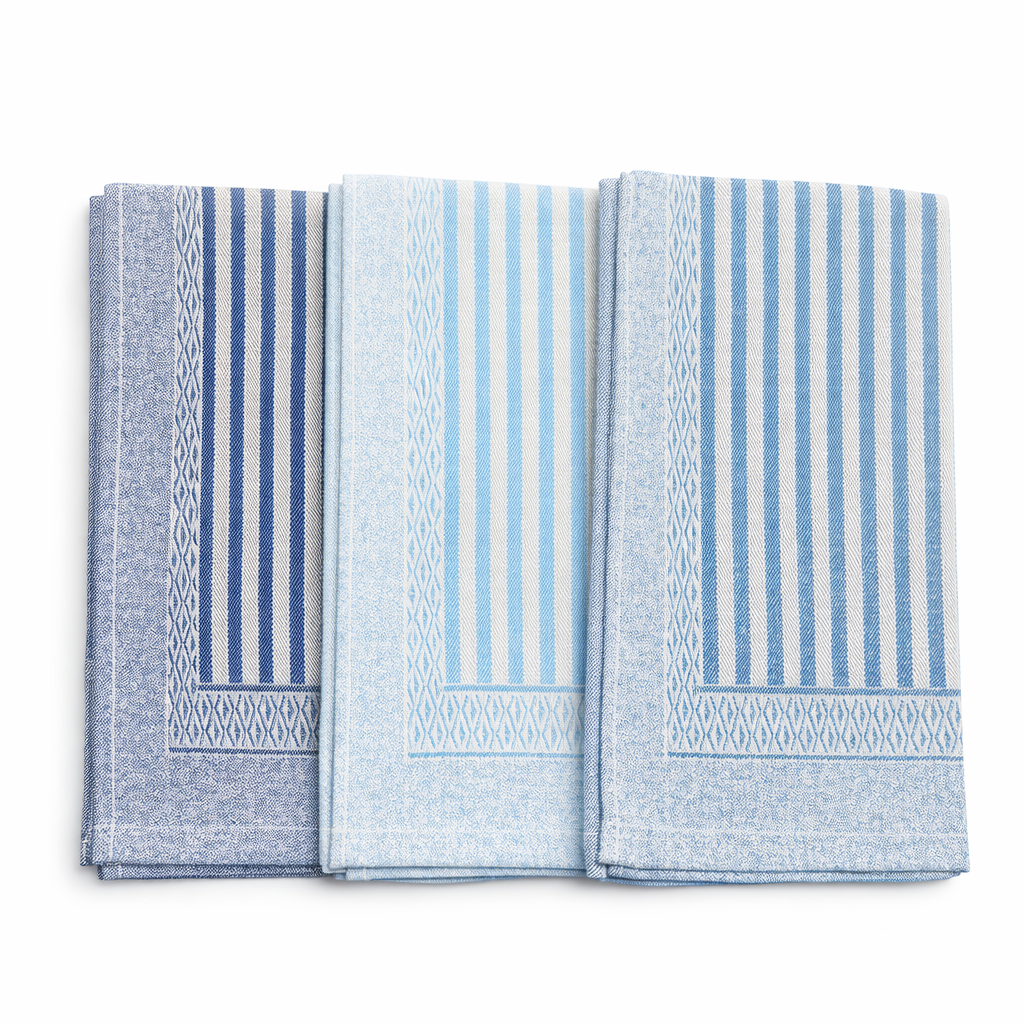 Il set è composto da 6 strofinacci, 2 per ogni colore, ciascuno nel formato 50x70 cm. Confezionati in una pratica busta, sono ideali anche come idea regalo utile e raffinata. Un prodotto 100% Made in Italy, sinonimo di qualità e cura artigianale.