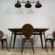 Questo tavolo combina la robustezza del metallo con la calda eleganza del legno naturale. Perfetto per cucine e living dal gusto industriale, offre praticità e carattere con la griglia portaoggetti inferiore.