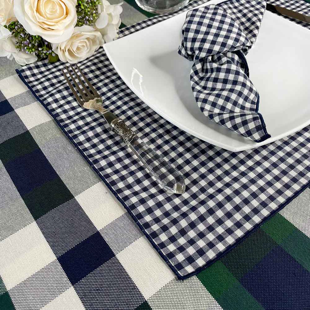 Abbina alla tua tovaglia il tovagliolo a quadretti vichy blu 100% cotone.
