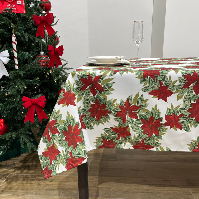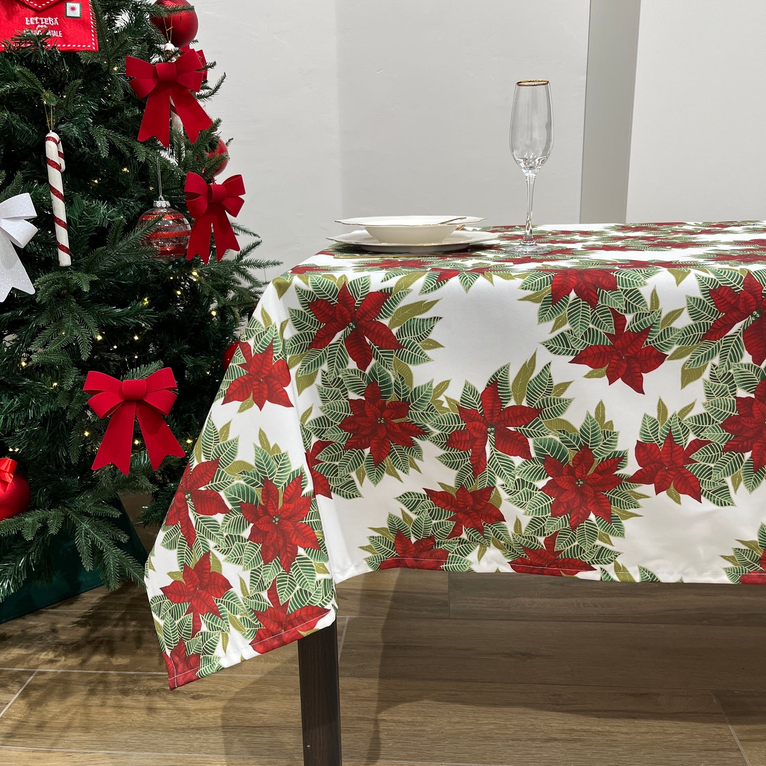 Il raffinato servizio da tavola composto da tovaglia e tovaglioli è realizzato in puro cotone. Portare l'eleganza in tavola è fondamentale per accompagnare i pasti con stile e buon gusto anche durante il periodo natalizio.