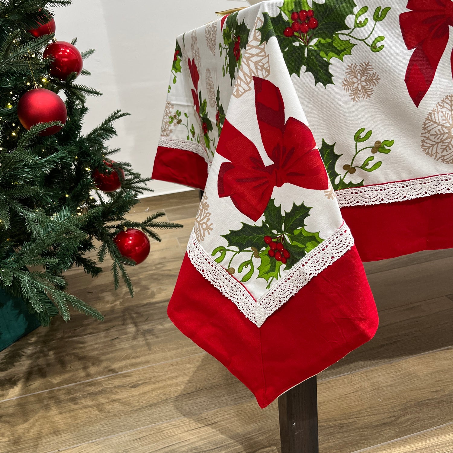 Tovaglia con bordo e pizzo applicato + tovaglioli