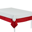 Tovaglia antimacchia idrorepellente con balza in lino e applicazioni in pvc.