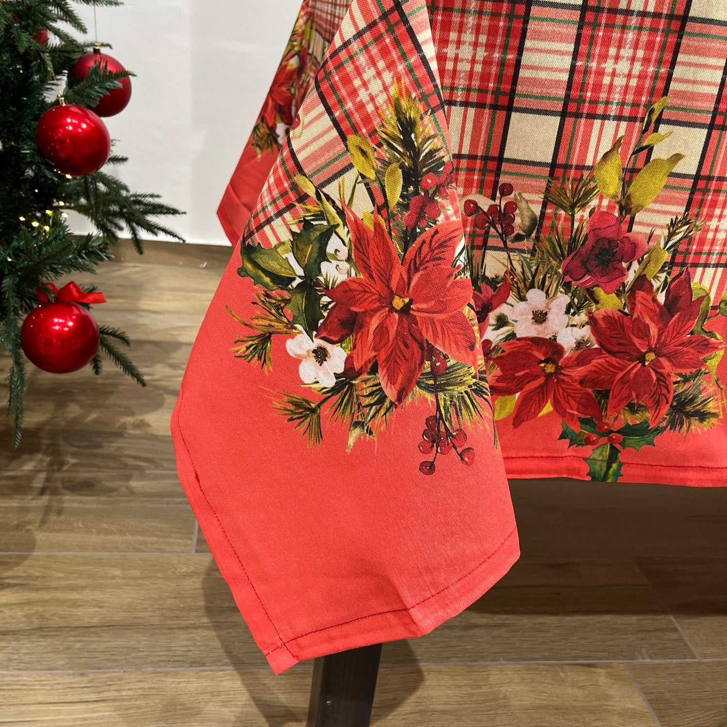 La tovaglia Red Star della linea Maè natalizia di Via Roma 60 è realizzata in puro cotone con vivace fantasia a tema natalizio.