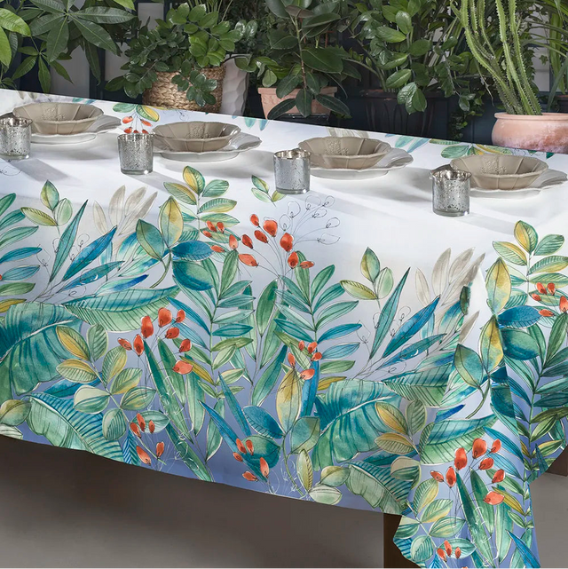 Tovaglia stampata in digitale realizzata con tessuto 100% cotone. Confezione con orlo di 2 cm. Il prodotto viene consegnato in un’elegante scatola. Vesti la tua tavola con lo stile e la qualità inconfondibile di Tessitura Randi.