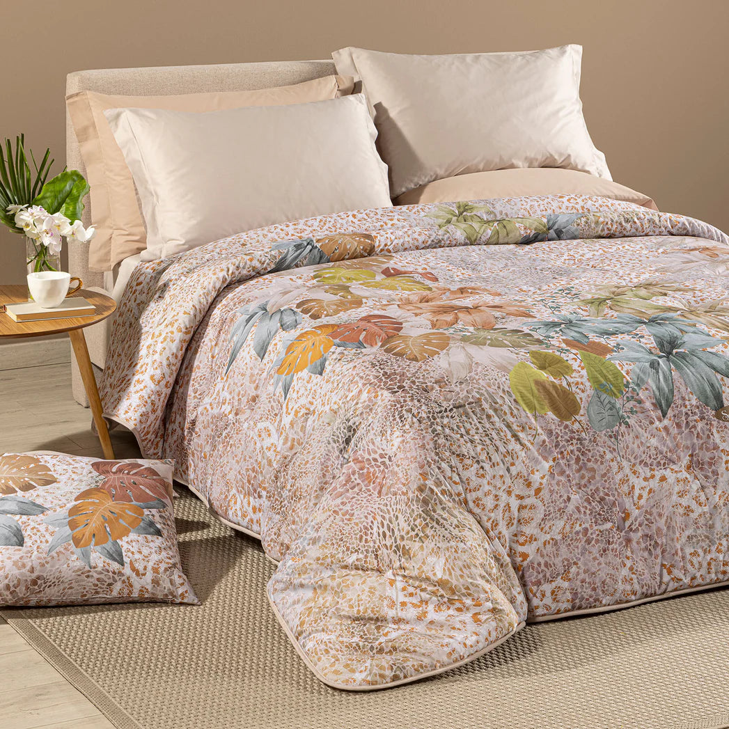 Trapunta Matrimoniale Gran Scaldotto In Cotone Pettinato Leopard Garden - Caleffi