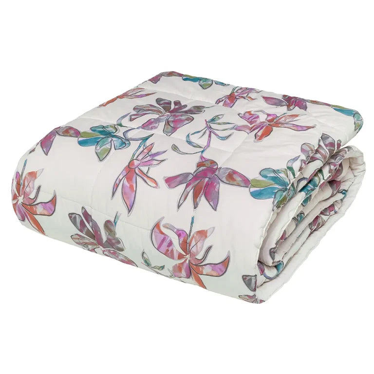 Trapunta realizzata in percalle di cotone 200 T.C. stampato in digitale con motivi floreali esaltati dalla trapuntatura piazzata e rifinita a mano con angoli stondati. Vesti la tua camera da letto con lo stile e la qualità inconfondibile di Tessitura Randi.