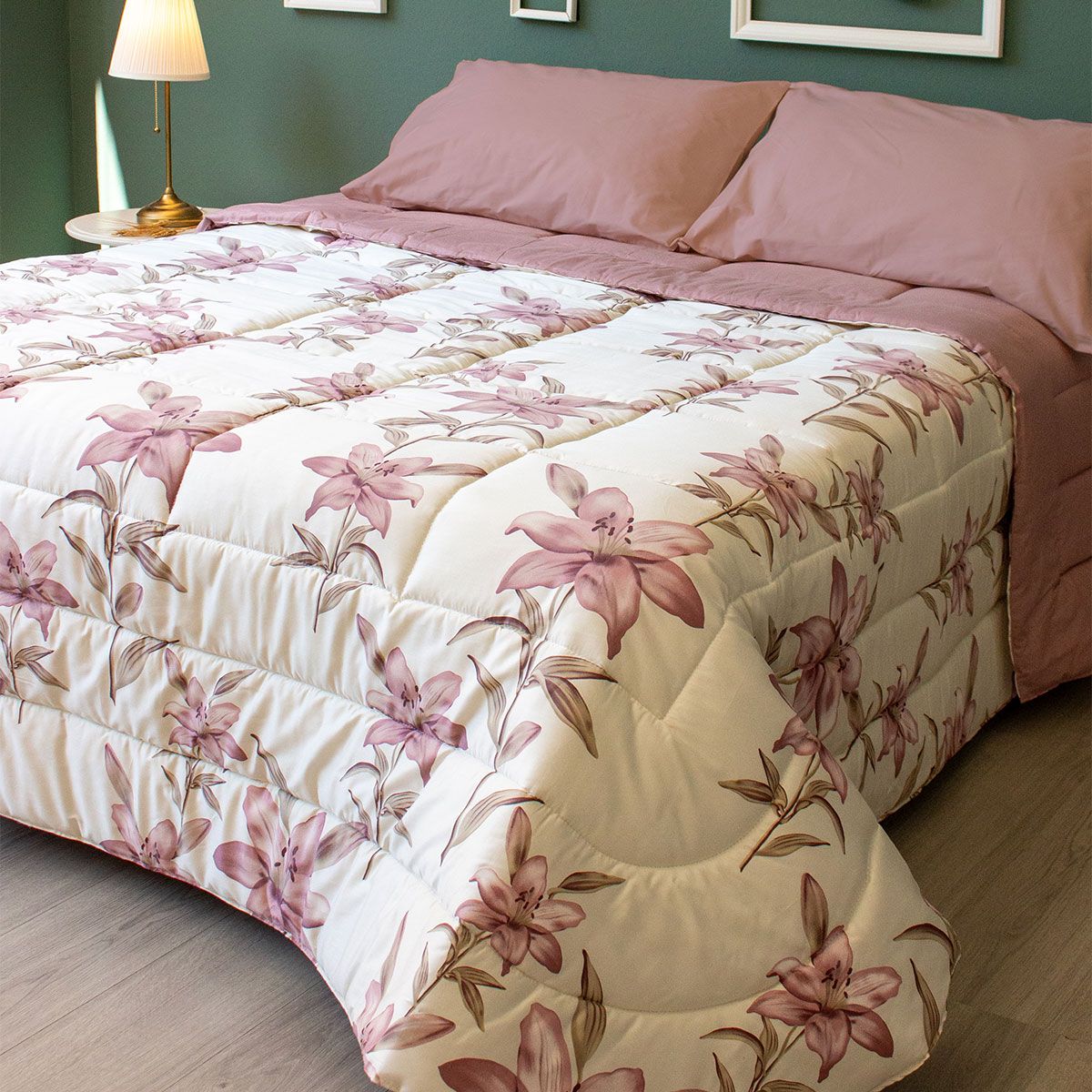 La trapunta modello Camilla di Maestri Cotonieri Home è un'opzione elegante e raffinata per la camera da letto. Realizzata in raso di cotone, un tessuto liscio e lucente, questa trapunta è disponibile in tre varianti cromatiche delicate: Cipria, Polvere e Salvia. La sua imbottitura anallergica da 300 grammi offre un calore confortevole senza risultare eccessivamente pesante, ideale per mantenere un clima piacevole durante la notte. La parte superiore della trapunta presenta un design raffinato con raffigurazioni floreali, conferendo un tocco di romanticismo e naturalezza all'ambiente. La parte posteriore, invece, è tinta unita e quindi double-face, permettendo di utilizzare la trapunta in entrambi i lati, offrendo così versatilità nello stile della camera. Questa trapunta combina comfort, stile e funzionalità, rendendola una scelta ideale per chi cerca una copertura elegante e accogliente per il letto.
