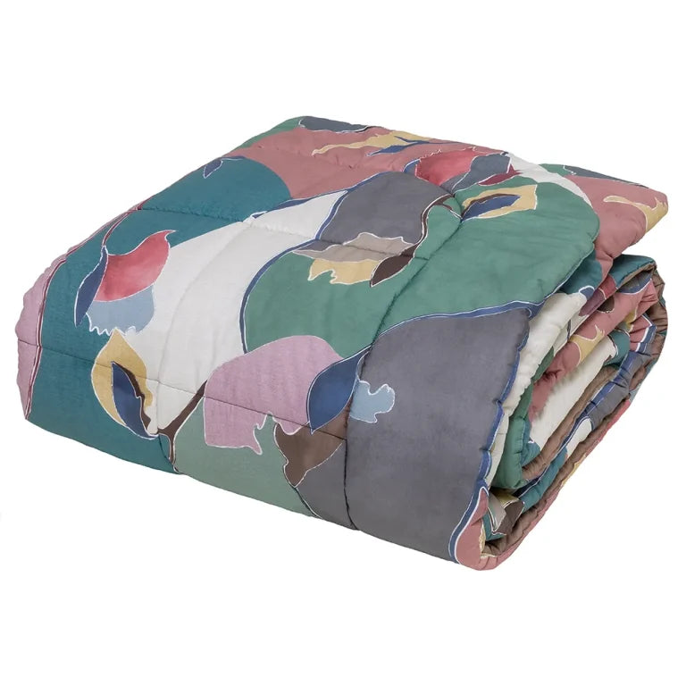 Trapunta double-face realizzata in percalle di cotone 200 T.C. RICICLATO stampato in digitale con motivi floreali esaltati dalla trapuntatura a quadri; rifinita a mano con angoli stondati. Vesti la tua camera da letto con la nuova collezione sostenibile di Tessitura Randi.