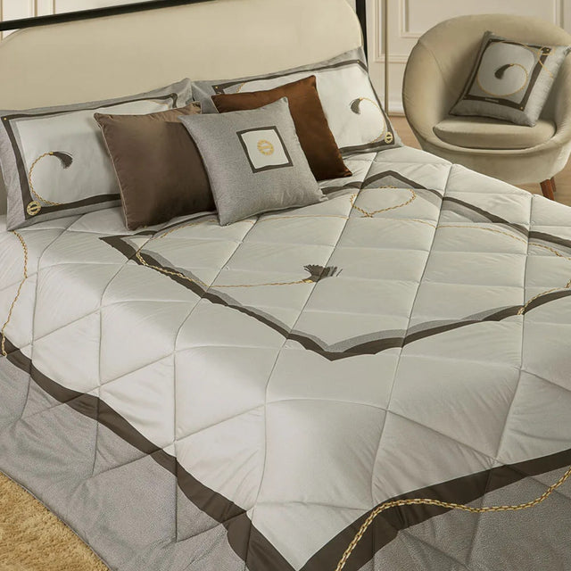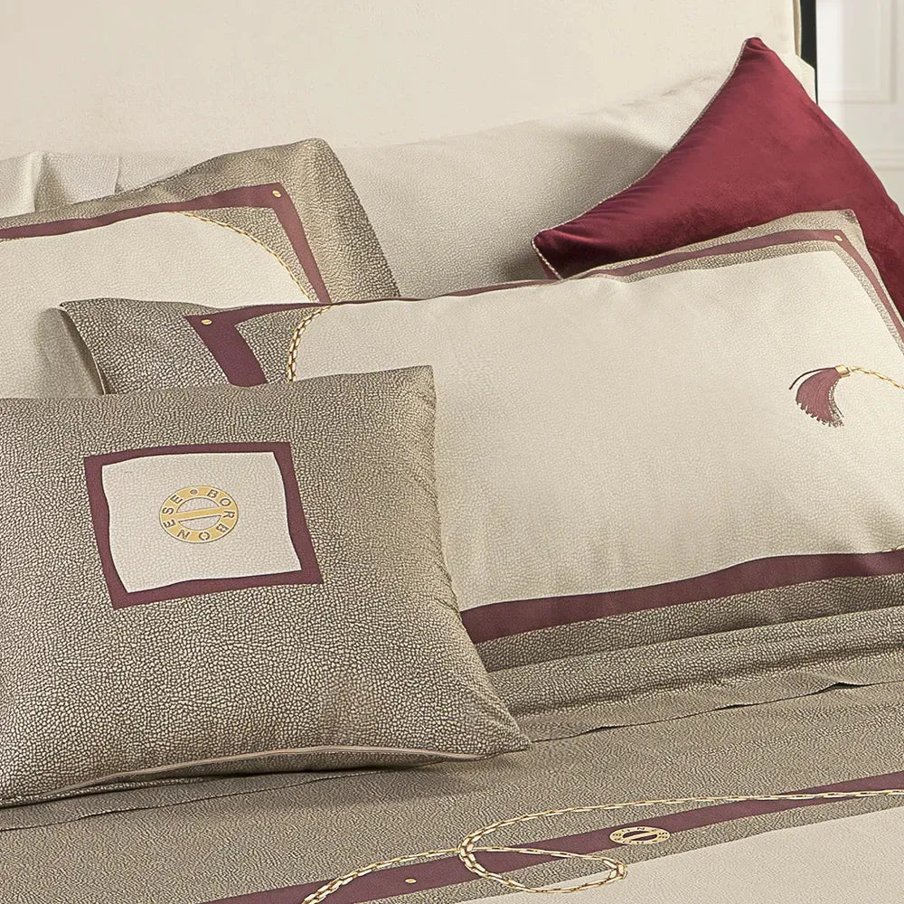 Trapunta in raso di puro cotone 300 T.C. La parte superiore è stampata con design personalizzato dall’iconica texture “OP” Occhio di Pernice, la parte inferiore con motivo “OP” coordinato. La trapuntatura piazzata esalta il raffinato disegno; rifinita a mano con angoli stondati. Vesti di eleganza la tua casa, con l’esperienza di Tessitura Randi e il design iconico Borbonese.