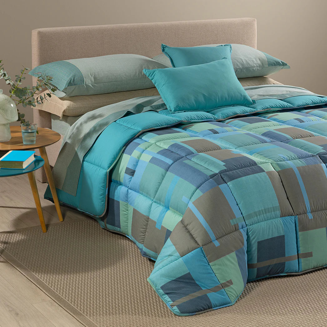 Realizzata in microfibra 100% poliestere, è soffice, leggera e facile da lavare, con imbottitura anallergica da 300 gr/mq che garantisce un calore uniforme e avvolgente.