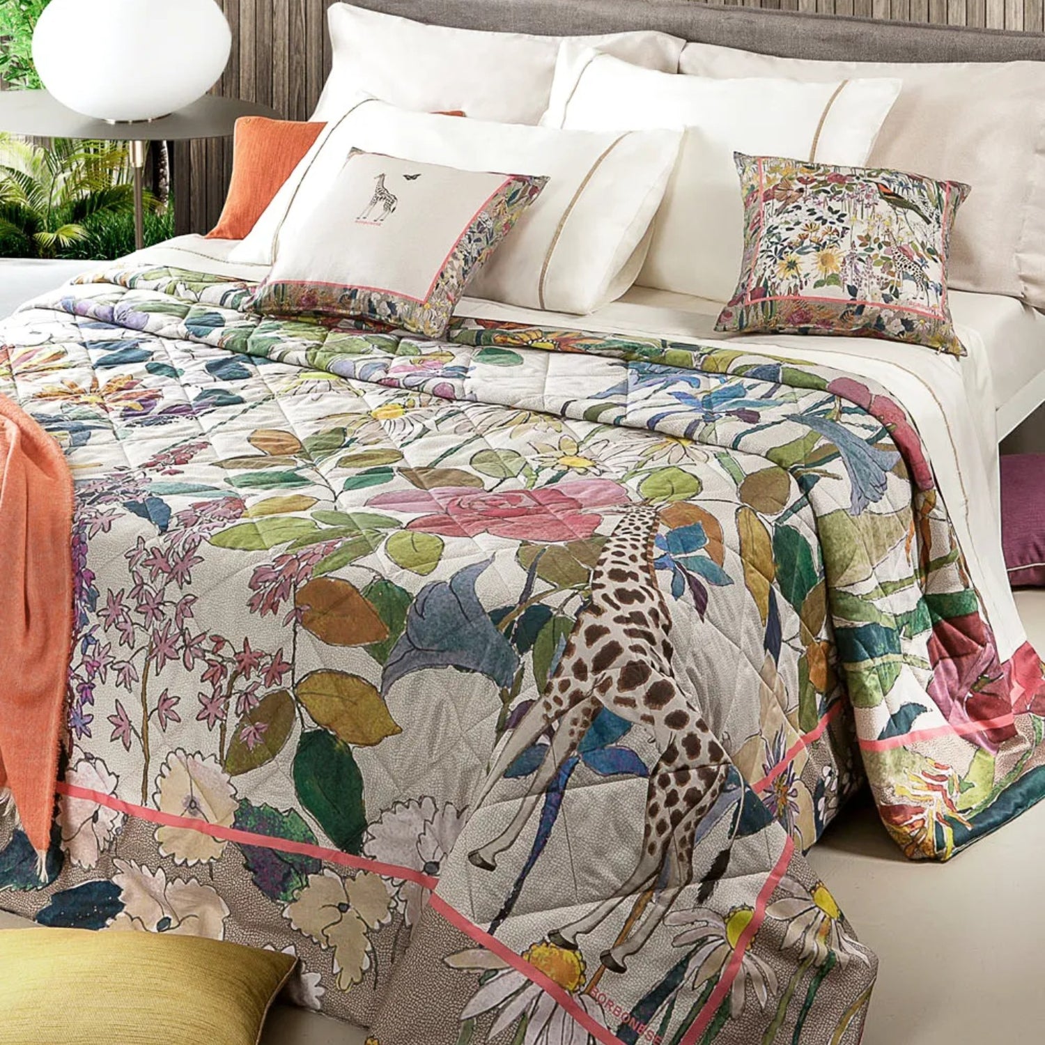 Trapunta leggera in raso di puro cotone 300 T.C. La parte superiore è stampata con design personalizzato dall’iconica texture “OP” Occhio di Pernice, la parte inferiore è in tinta unita. La trapuntatura piazzata esalta il raffinato disegno; rifinita a mano con angoli stondati. Vesti di eleganza la tua casa, con l’esperienza di Tessitura Randi e il design iconico Borbonese.