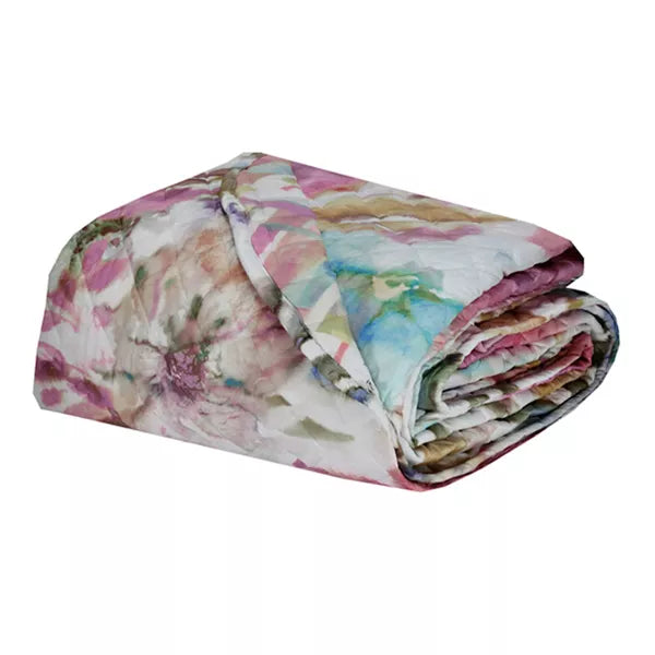 Trapunta leggera double-face realizzata in percalle di cotone 200 T.C. Capo stampato in digitale con delicati motivi floreali, esaltati dalla trapuntatura a rombi.