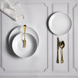 Ideale in uno stile classico ma adatto anche ad una tavola contemporanea e glamour grazie alla candida porcellana bianca, messa in risalto da una pregiata lavorazione lungo i bordi e sul fondo dei piatti