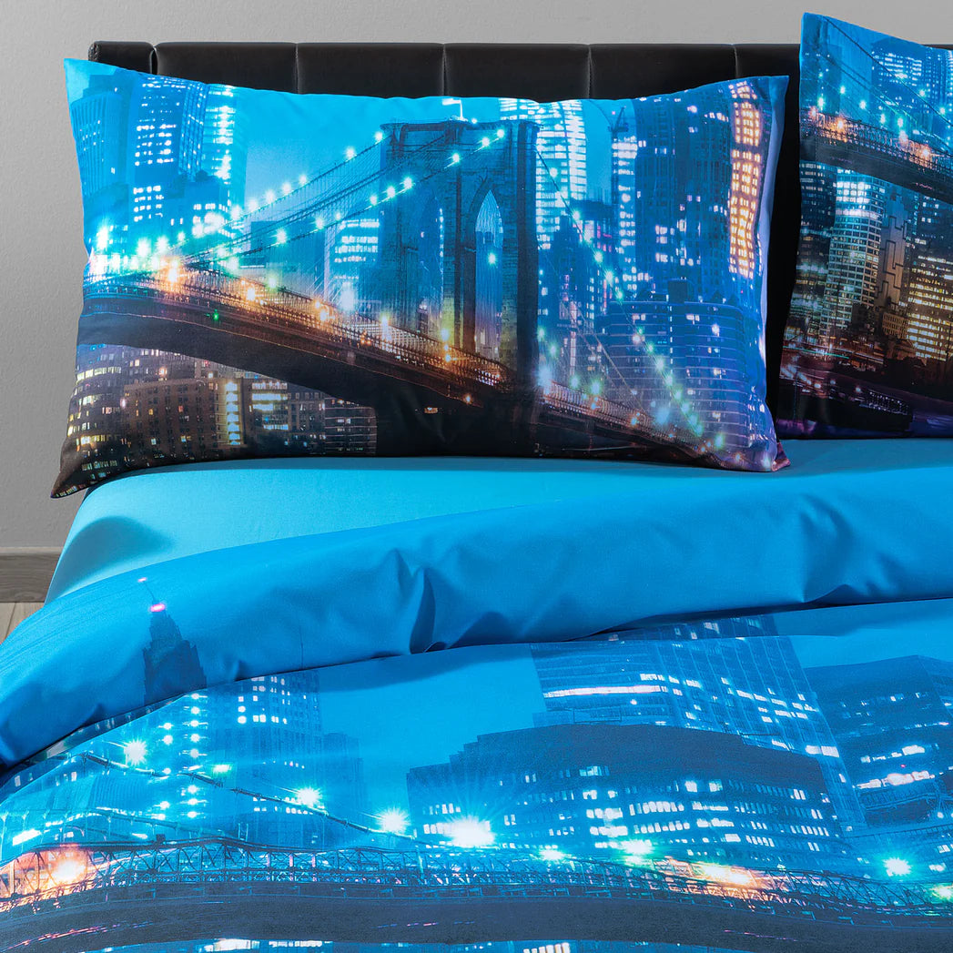 Trasforma la tua camera da letto in una finestra su New York con il Completo Copripiumino Brooklyn – Sogni di Viaggio Fotografico. Realizzato in 100% cotone, unisce freschezza, morbidezza e resistenza ai lavaggi, garantendo comfort e qualità ogni notte. La stampa fotografica ad alta definizione raffigura il celebre ponte di Brooklyn illuminato, per un tocco moderno e scenografico che rende unico l’ambiente.