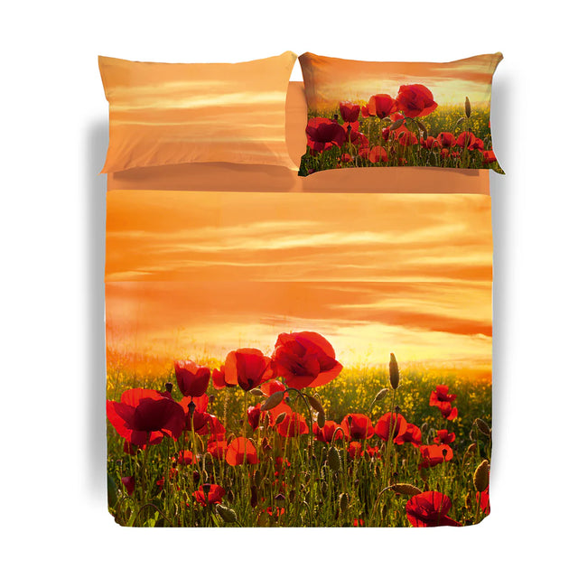 Regala alla tua camera da letto un tocco di natura con il Completo Copripiumino Papaveri – Fotografico. Realizzato in 100% cotone, unisce freschezza, morbidezza e resistenza ai lavaggi, garantendo comfort e qualità ogni notte. La stampa fotografica ad alta definizione ritrae un suggestivo campo di papaveri al tramonto, per un effetto scenografico e avvolgente che dona calore e colore all’ambiente.