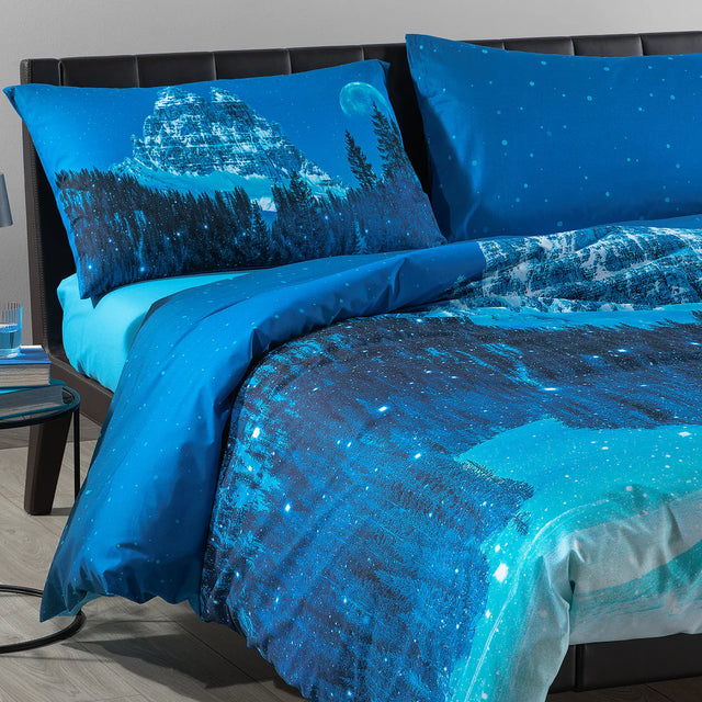 Immergiti nell’atmosfera magica dell’inverno con il Completo Copripiumino Snow in the Blue Night – Fotografico. Realizzato in 100% cotone, unisce freschezza, morbidezza e resistenza ai lavaggi, garantendo comfort e qualità notte dopo notte. La stampa fotografica ad alta definizione raffigura un paesaggio innevato illuminato dalla luna e dalle stelle, per un effetto scenografico e suggestivo che rende la camera da letto unica e accogliente.