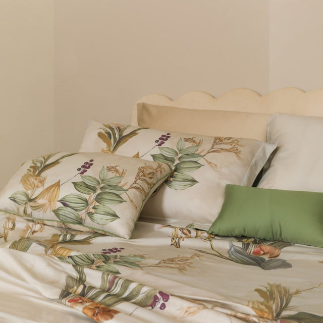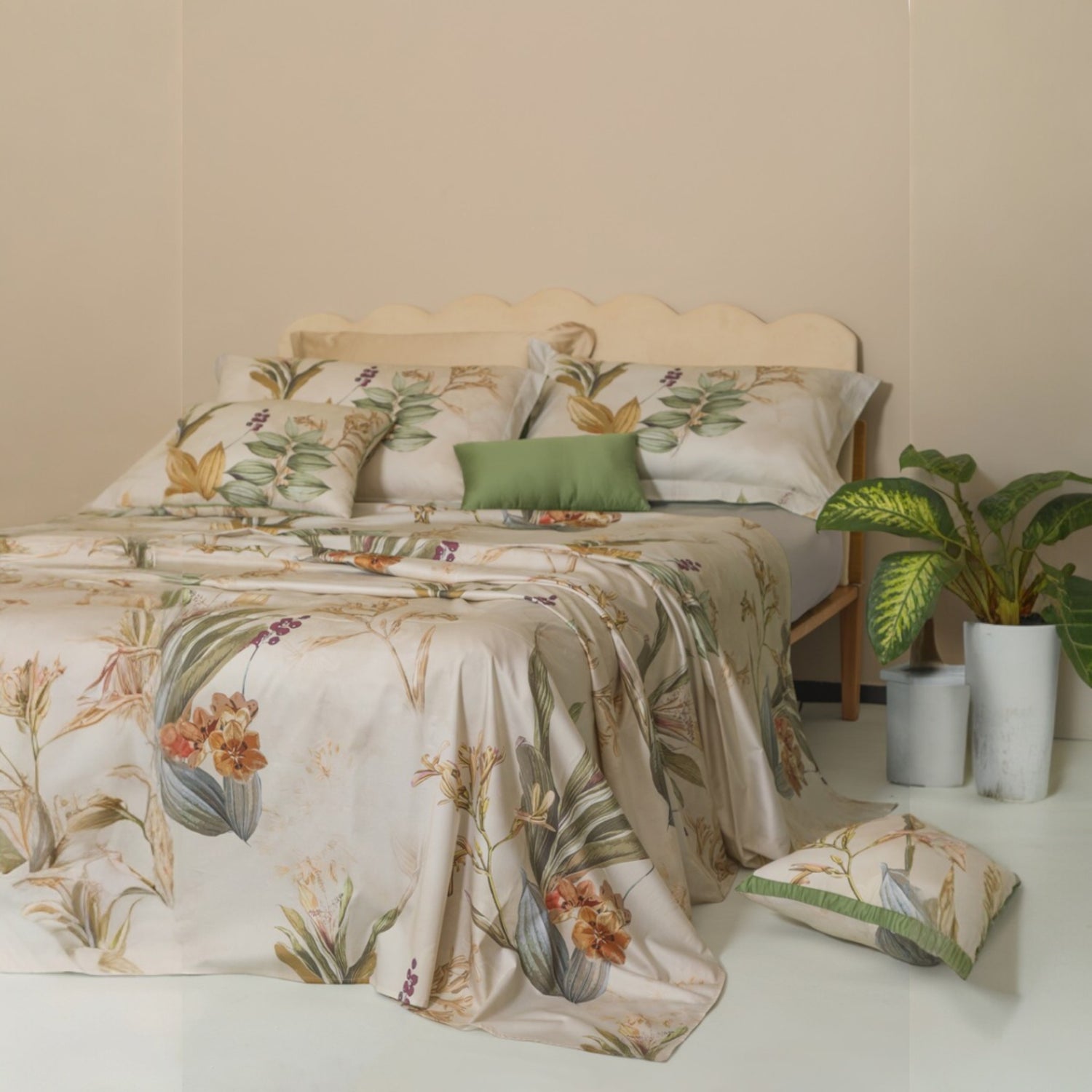 Completo letto Rebecca : il piacere di dormire inizia dalle lenzuola in raso satin 100% 300 TC stampa digitale con disegno floreale.