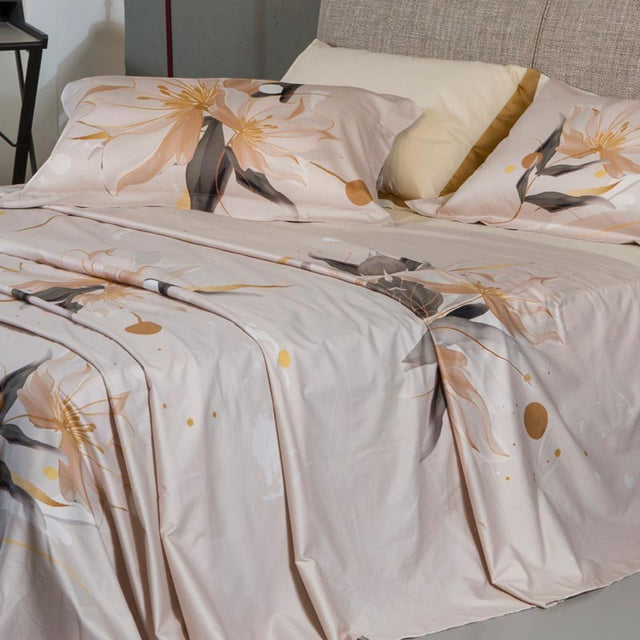 Completo letto Secret: il piacere di dormire inizia dalle lenzuola in raso satin 100% 300 TC stampa digitale.