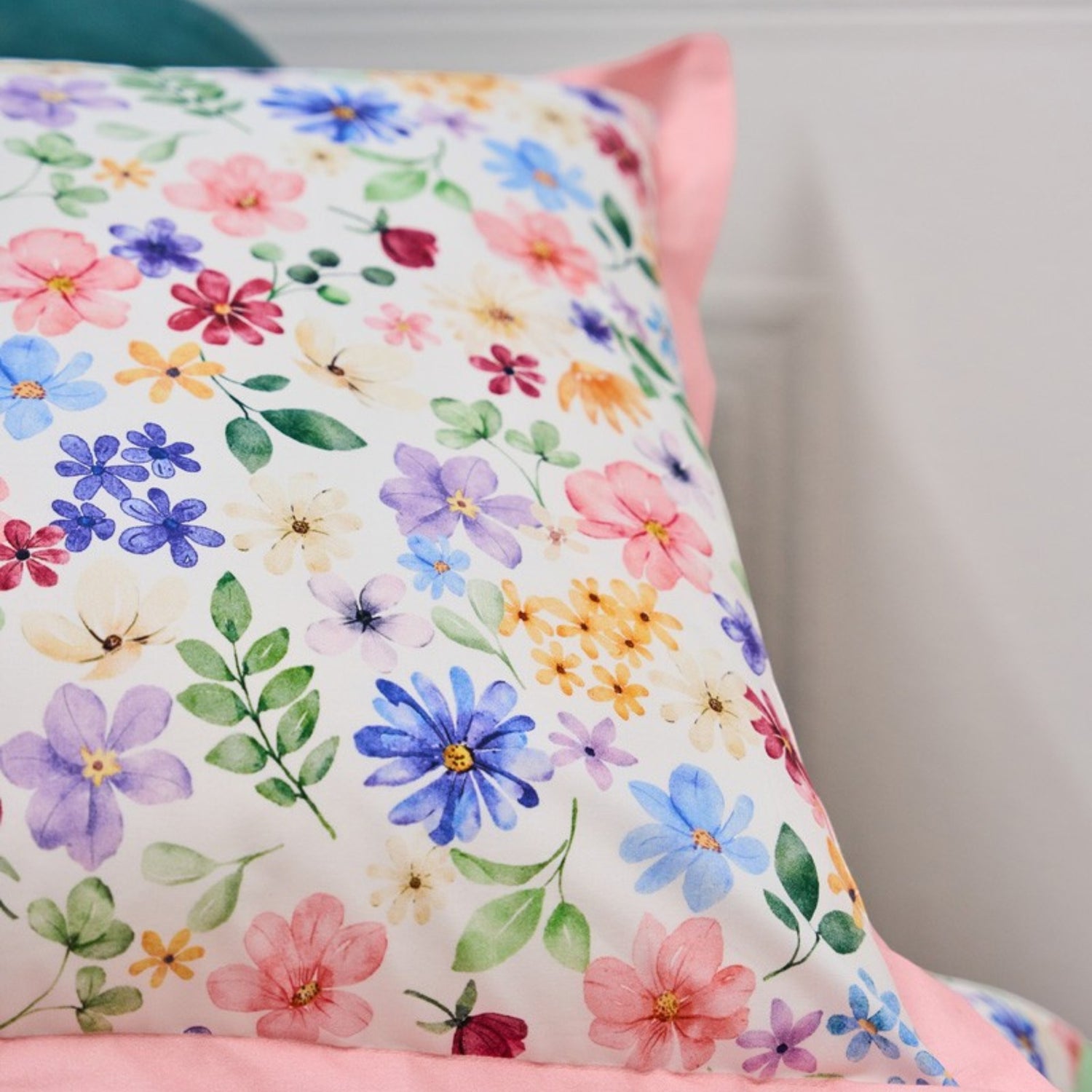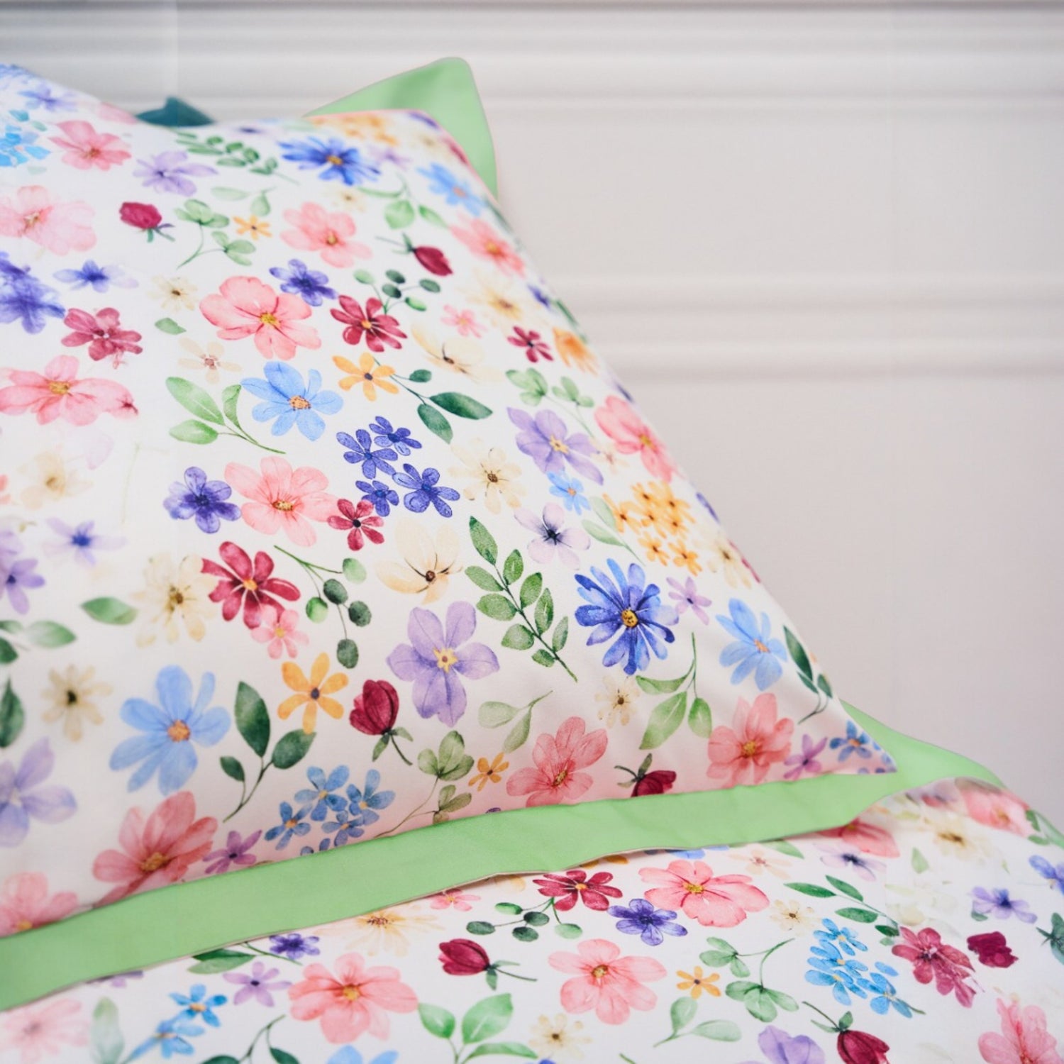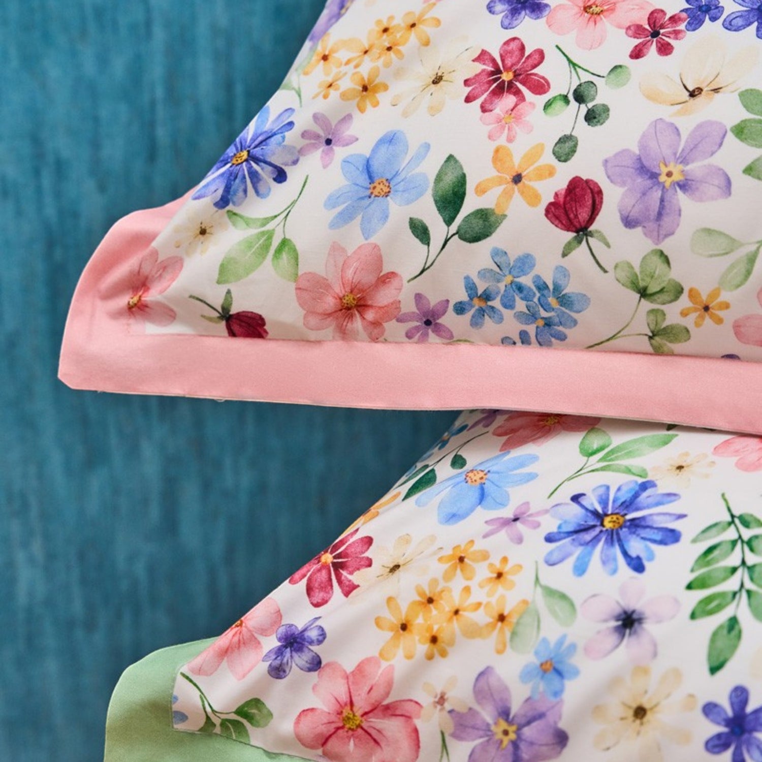 Completo letto Viki: il piacere di dormire inizia dalle lenzuola in Percalle 100% cotone 200Tc disegno floreale all over stampa digitale.