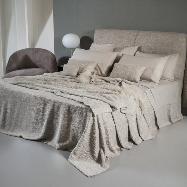 Copriletto in morbido e confortevole tessuto color naturale, dal design tridimensionale per un letto dallo stile accogliente e sofisticato.