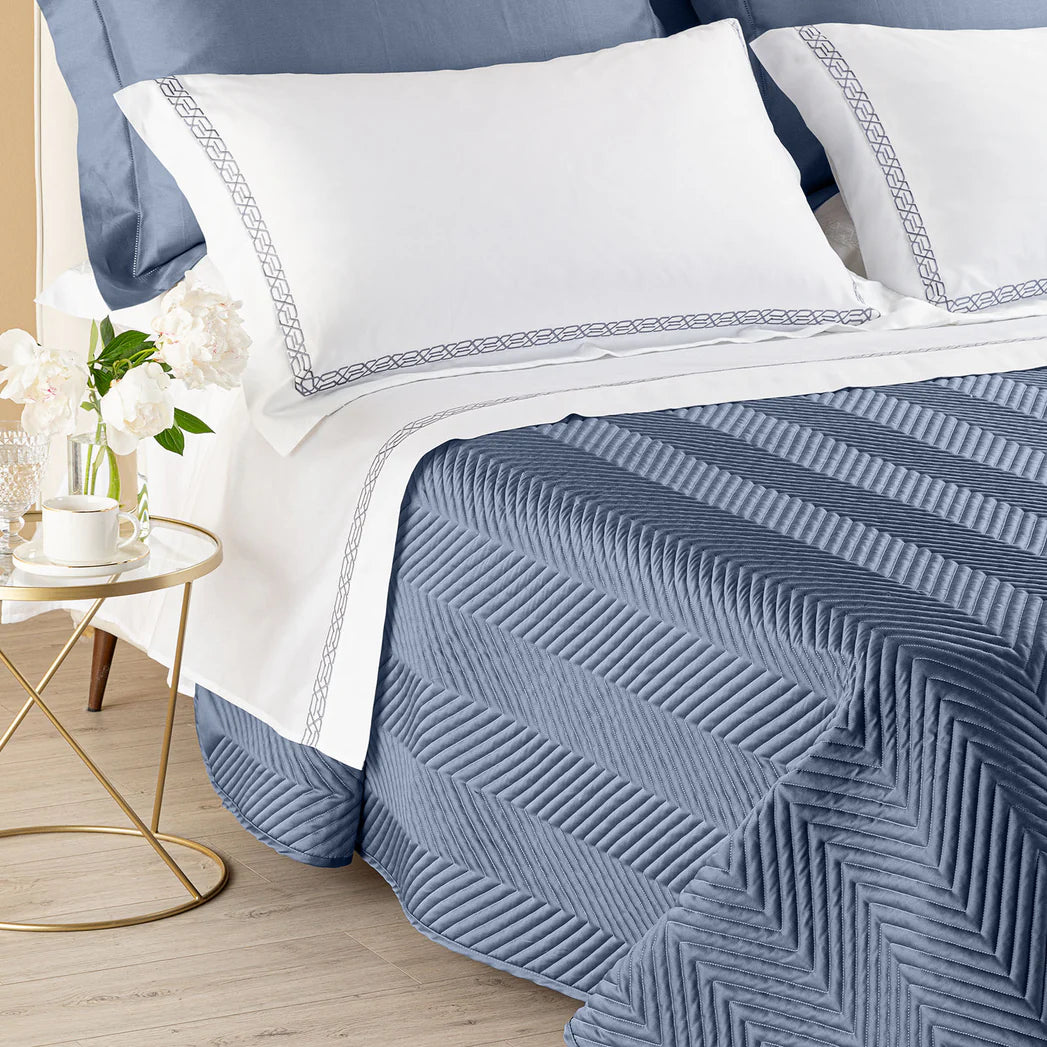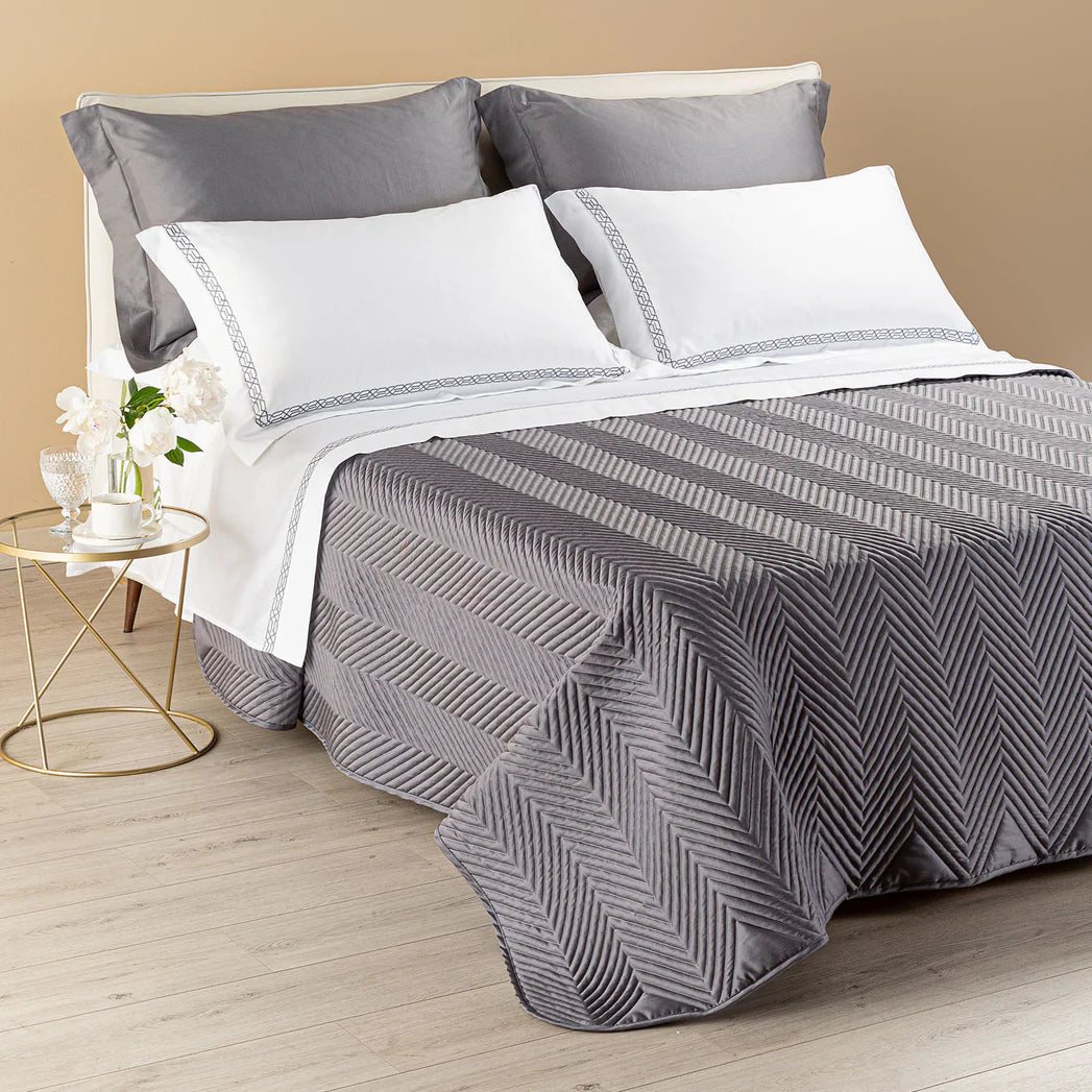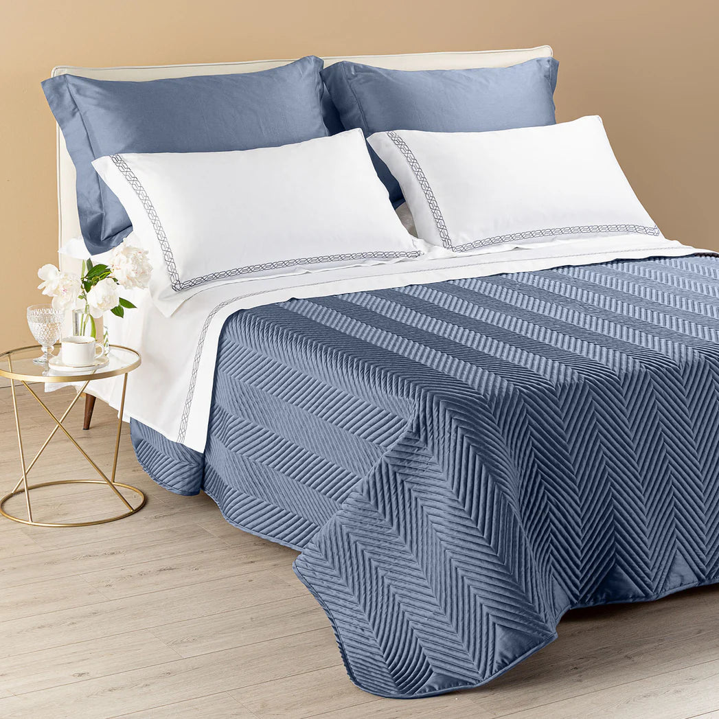 Copriletto Trapuntato Continental In Raso Di Cotone 300 T.C. Matrimoniale - Caleffi