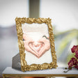 Elegante portafoto con cornice decorata da foglie e fiori. Formato foto cm 20x25.