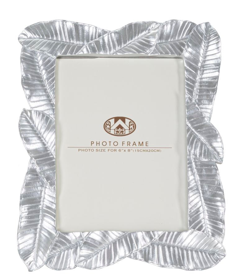 Cornice in resina con vetro. Linee eleganti che richiamano le foglie di alloro per incorniciare i tuoi ricordi più belli in modo contemporaneo e mai scontato. Formato foto cm 15x20.