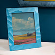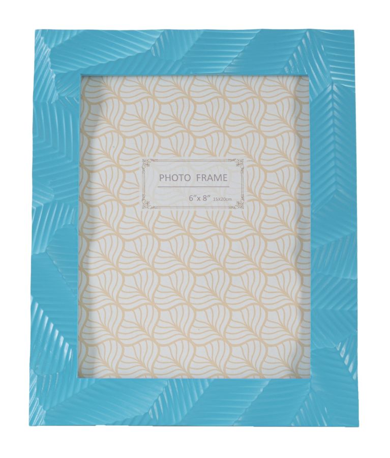 Cornice rettangolare da appoggio in resina celeste dal design semplice e geometrico. Può essere posizionata sia in orizzontale che in verticale. Formato foto cm 15x20.