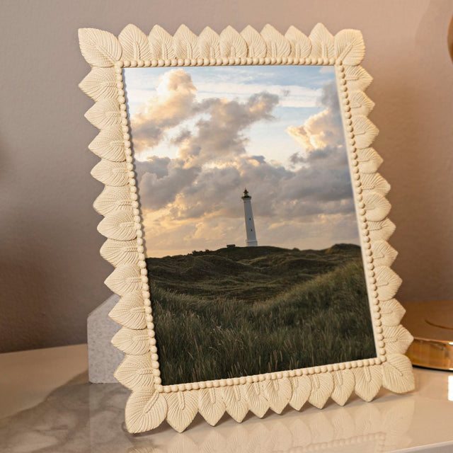 La Cornice Light Leaf esprime eleganza naturale con il suo delicato bordo decorato a foglie. Il design raffinato e la tonalità chiara la rendono perfetta per ambienti luminosi e sofisticati, valorizzando con stile ricordi preziosi. Formato foto cm 20x25.