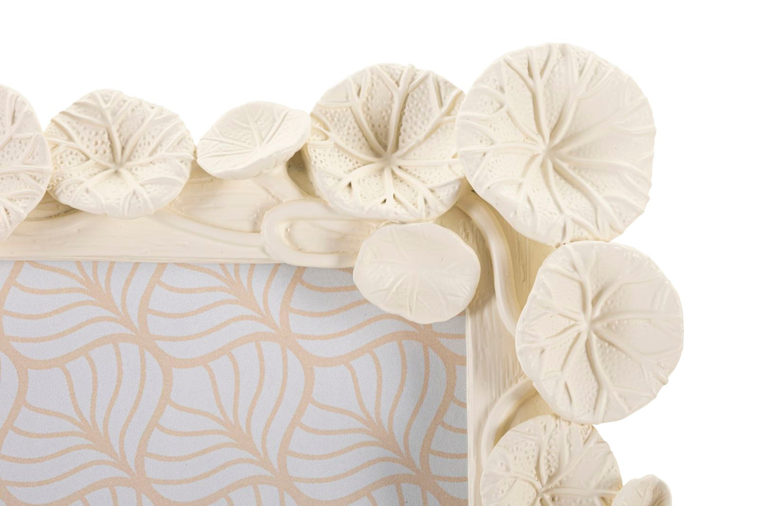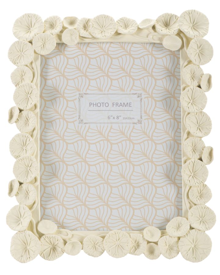 Cornice rettangolare da appoggio in resina impreziosita da un insieme di foglie di loto. Può essere posizionata sia in orizzontale che in verticale. Formato foto cm 15x20.
