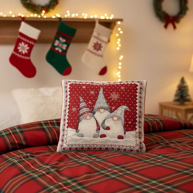 Decora la tua casa con il cuscino natalizio Karì, realizzato in pregiato tessuto Gobelin con filato Lurex che dona un tocco luminoso e festivo. Sfoderabile con zip, è completo di imbottitura in morbida fibra anallergica per il massimo comfort.