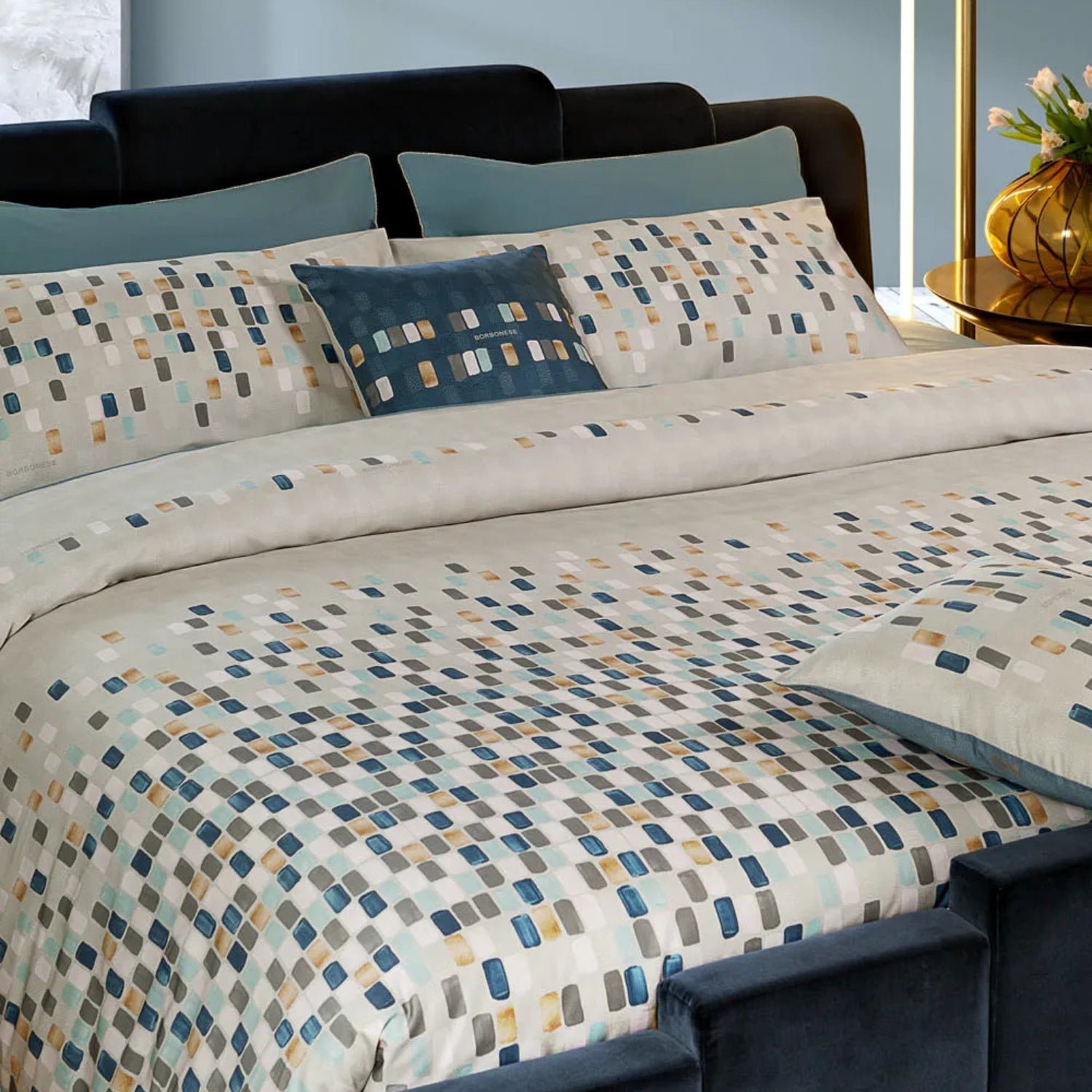 Cuscino arredo double-face in raso di puro cotone 300 T.C. La parte superiore è stampata con design personalizzato dall’iconica texture “OP” Occhio di Pernice; la parte inferiore con motivo “OP” coordinato. Confezionato con zip e cursore personalizzato, comodamente sfoderabile. La soffice imbottitura è in poliestere. Vesti di eleganza la tua casa, con l’esperienza di Tessitura Randi e il design iconico Borbonese.
