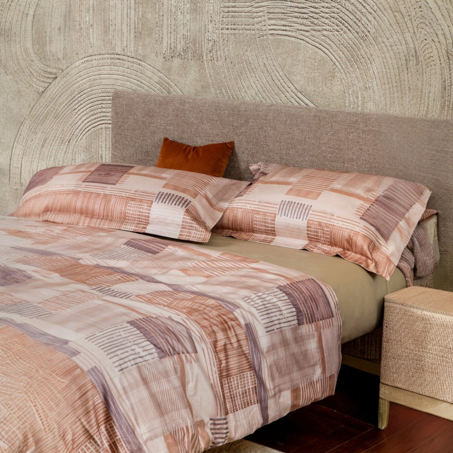 Parure copripiumino con fantasia esclusiva in raso satin 100% cotone 300 TC stampa digitale.