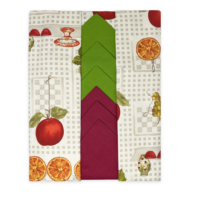 Il raffinato servizio da tavola composto da tovaglia e tovaglioli è realizzato in puro cotone. Portare l'eleganza in tavola è fondamentale per accompagnare i pasti con stile e buon gusto.