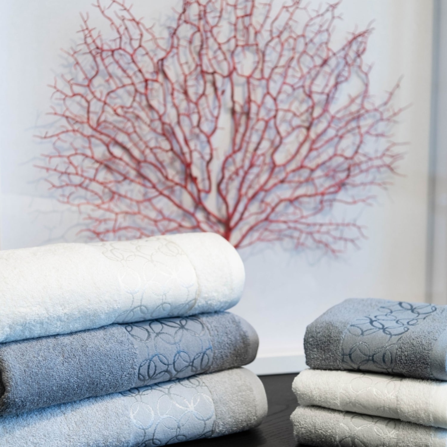 Set asciugamani 3 viso + 3 ospite in 100% spugna di cotone.