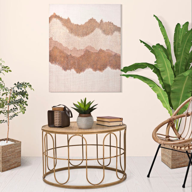 TAVOLO DA CAFFE' SAMUI - Tavolo da caffè rotondo con struttura in metallo che ricorda il bamboo e piano in rattan. La lavorazione della struttura composta da linee morbide e avvolgenti dona un tocco di calore ad ogni ambiente.